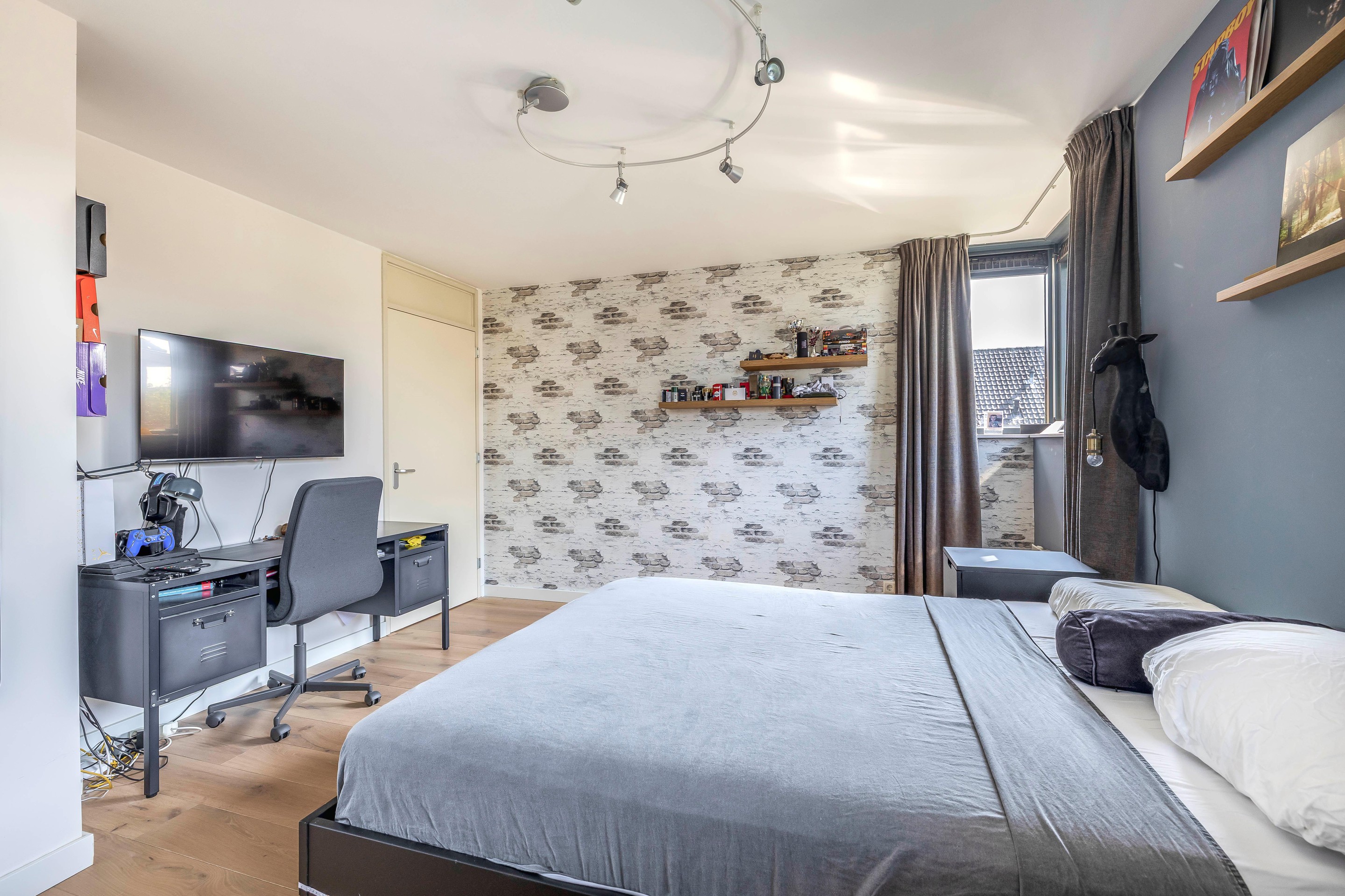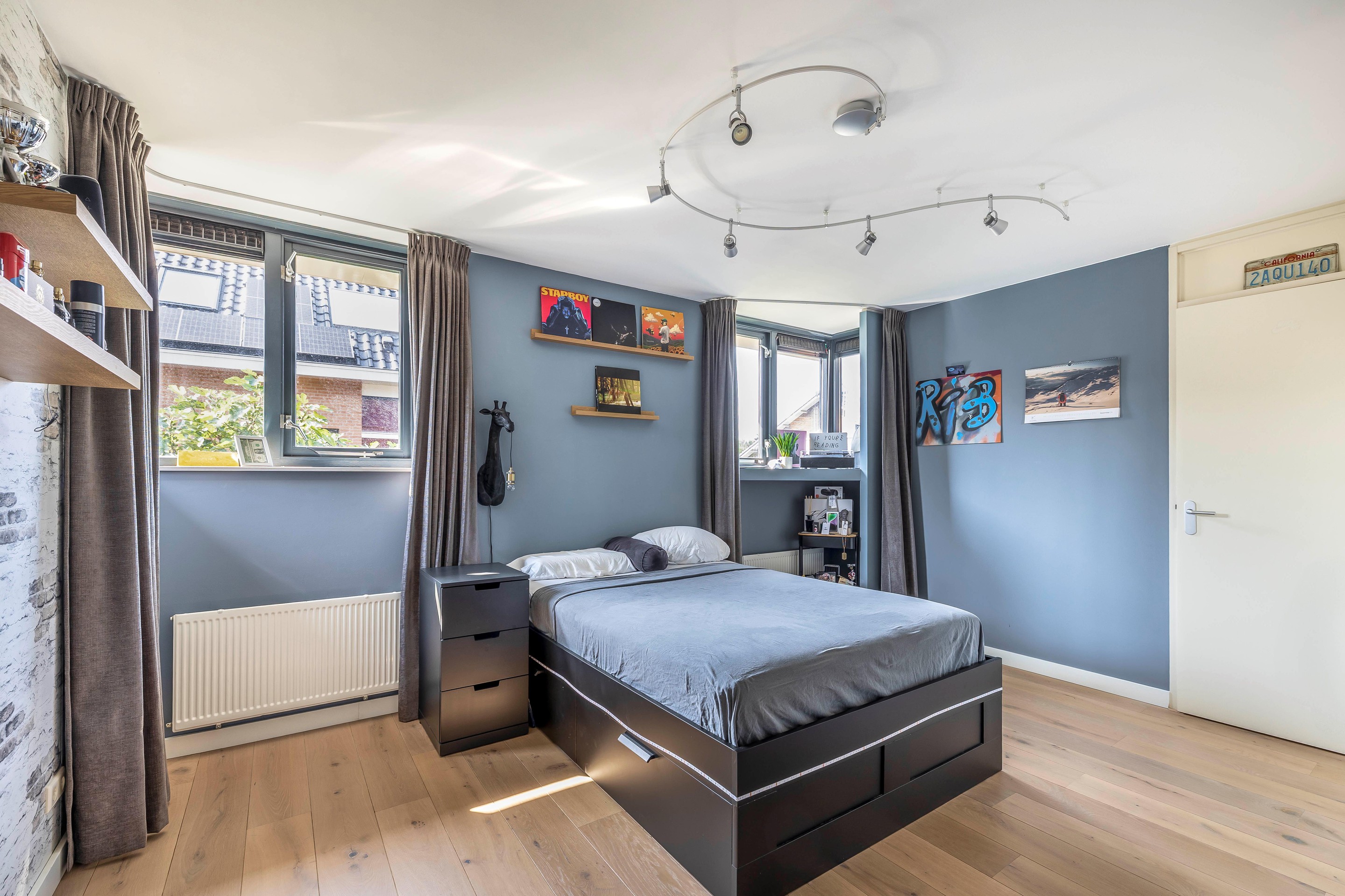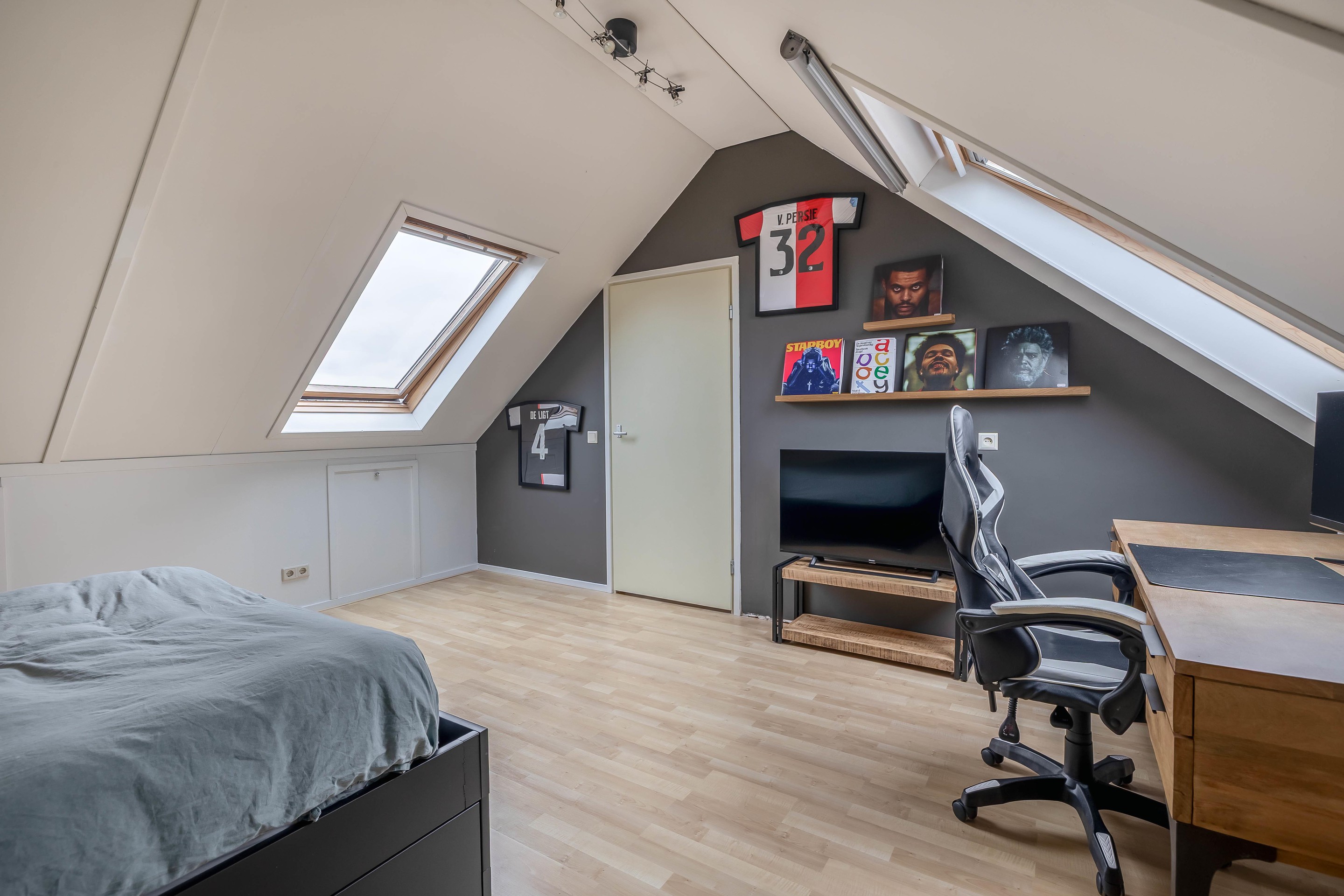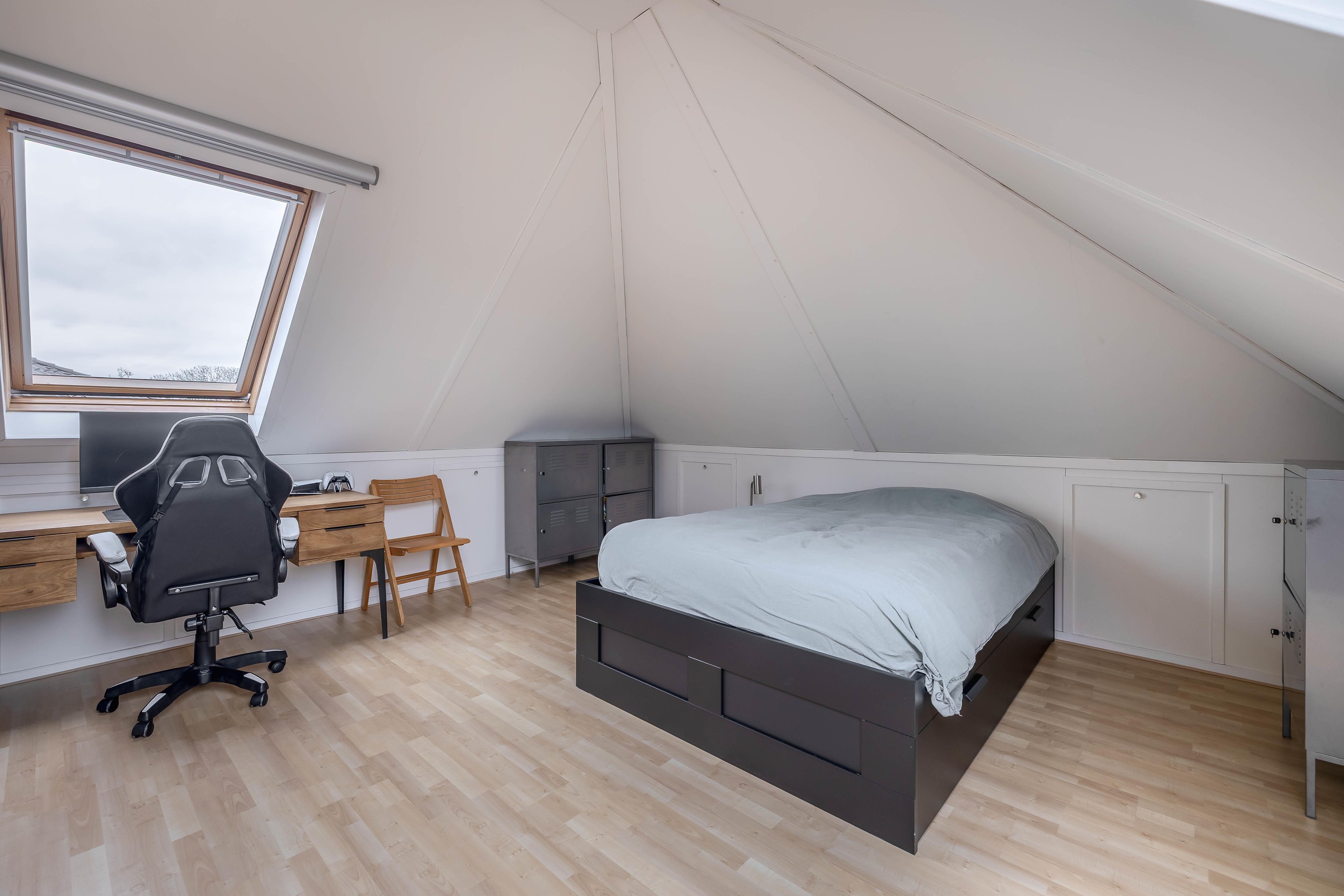 Aan de achterzijde van de woning bevindt zich een ruime slaapkamer. Dankzij de dakramen aan beide kanten komt er veel daglicht binnen.