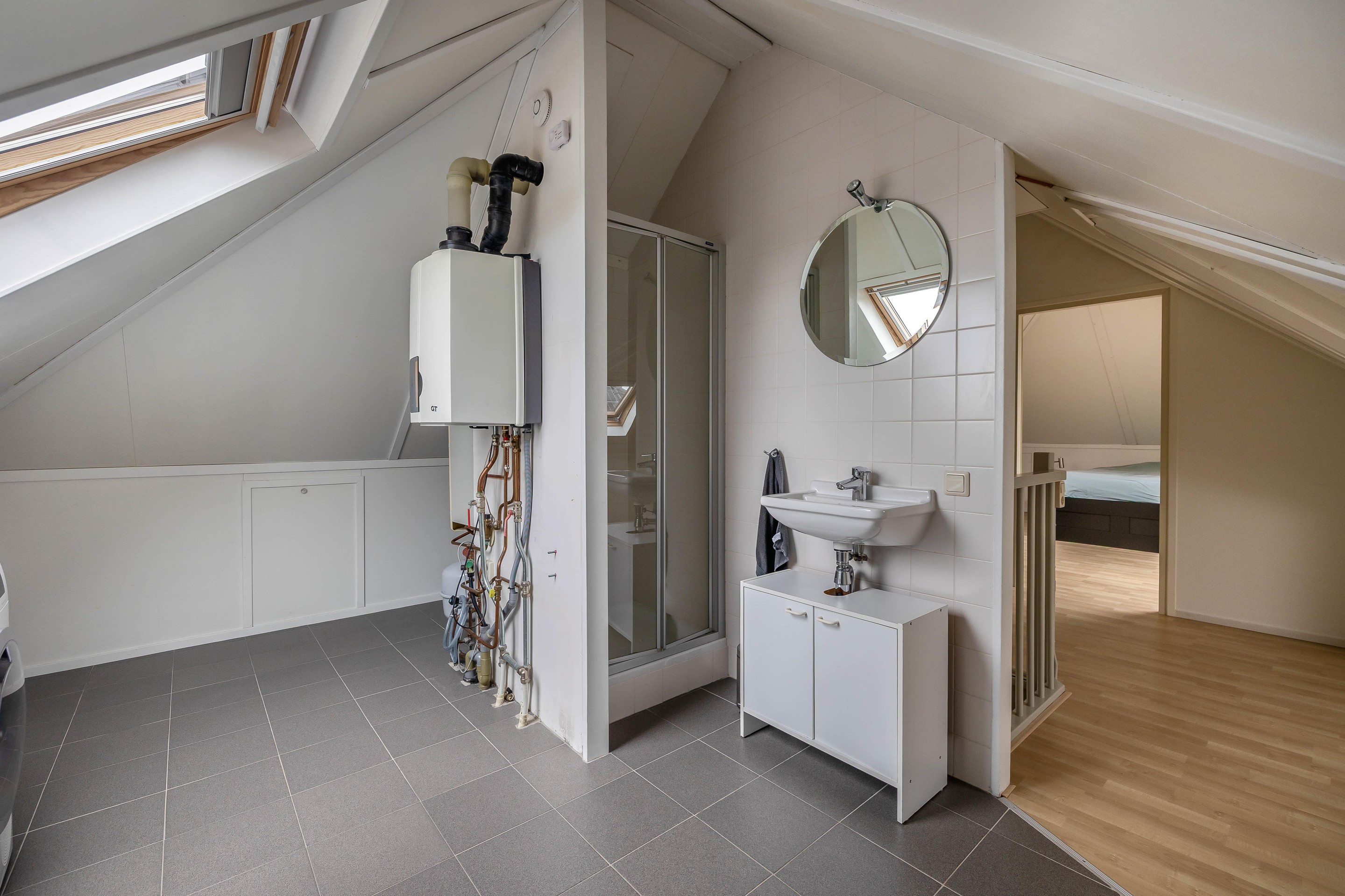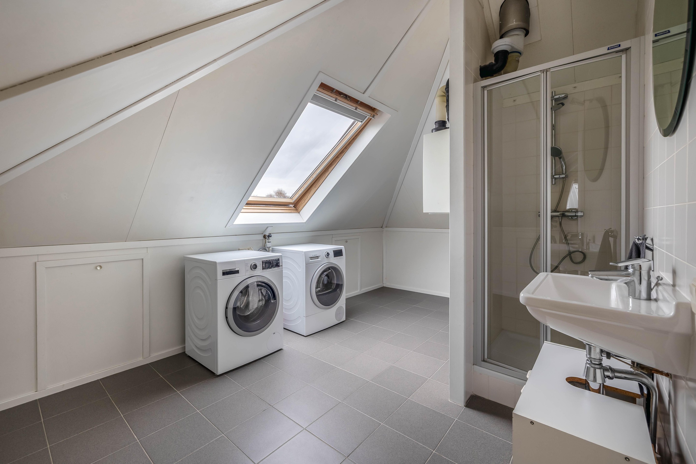 Aan de voorzijde van de woning is een handige wasruimte gesitueerd. Hier vind je aansluitingen voor zowel de wasmachine als de droger. Ook de cv-installatie (ATAG HR uit 2010) en de zonneboiler staan hier opgesteld. Een zonnecollector op het dak zorgt voor de opwarming van deze boiler.