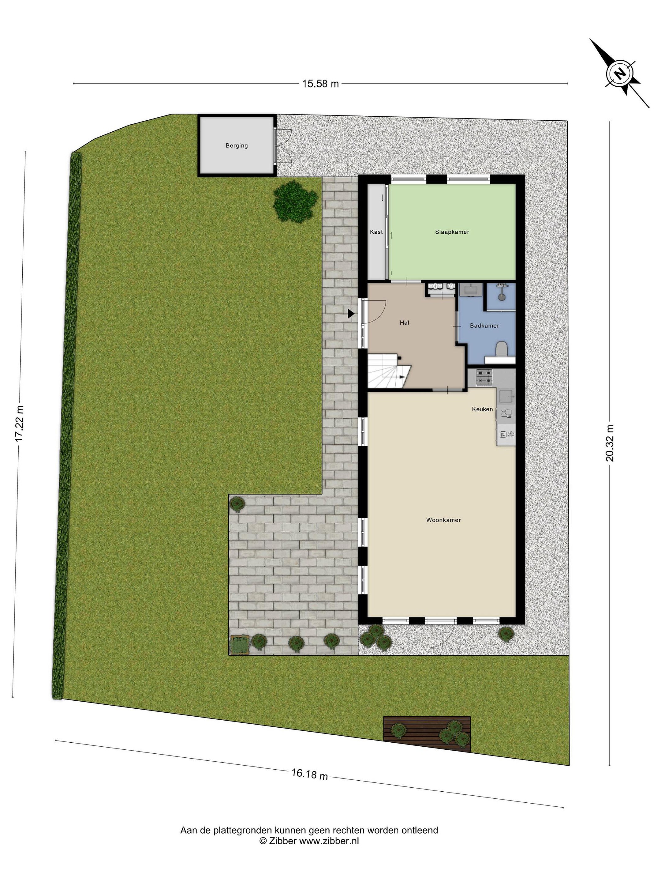 - Gelegen op eigen grond (ca. 400 m2)