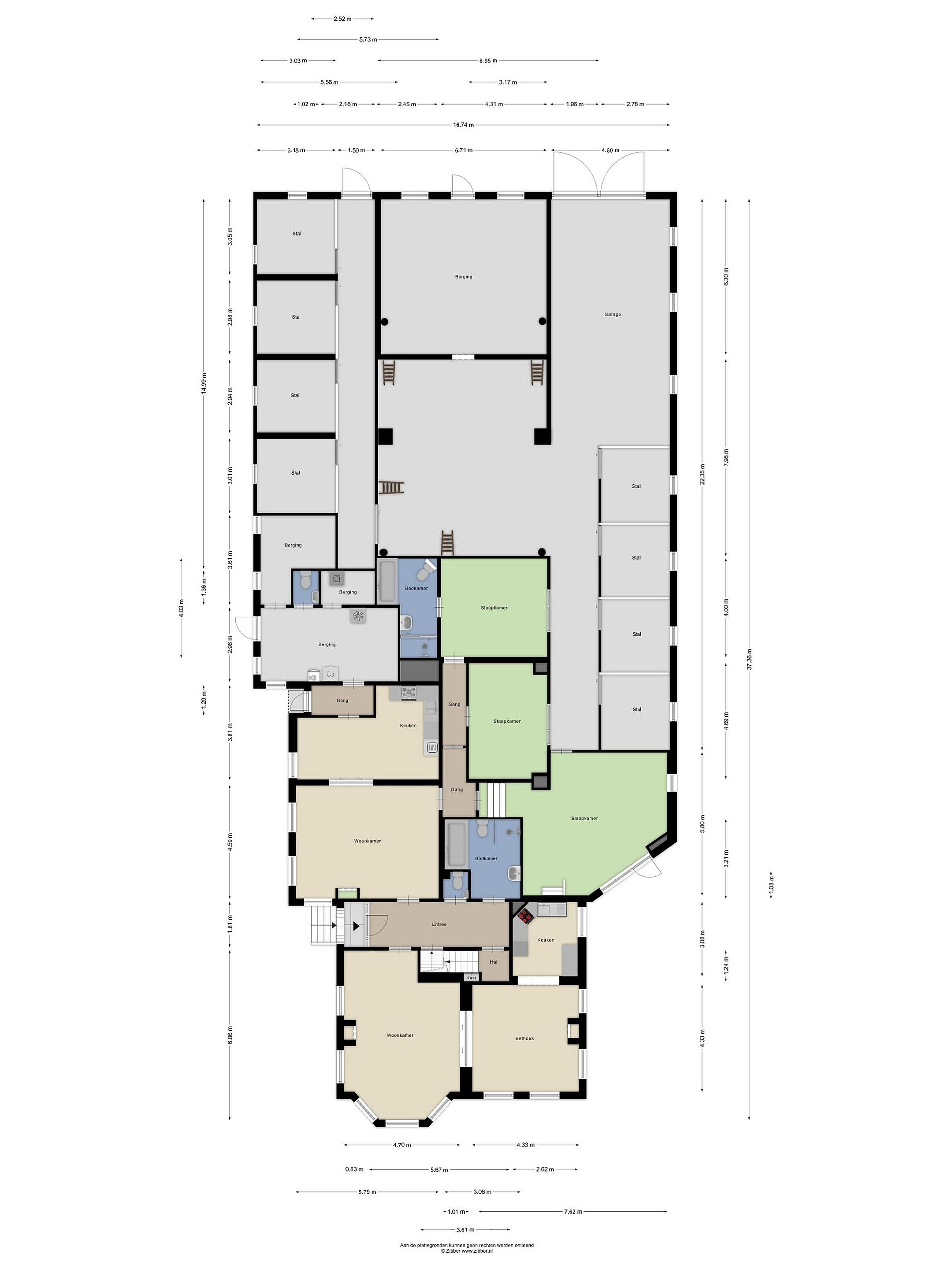 Genoemde ruimtes aan de achterzijde van de woning lenen zich er uitstekend voor om gelijkvloers te wonen, dubbele bewoning of een combinatie van wonen en werken aan huis