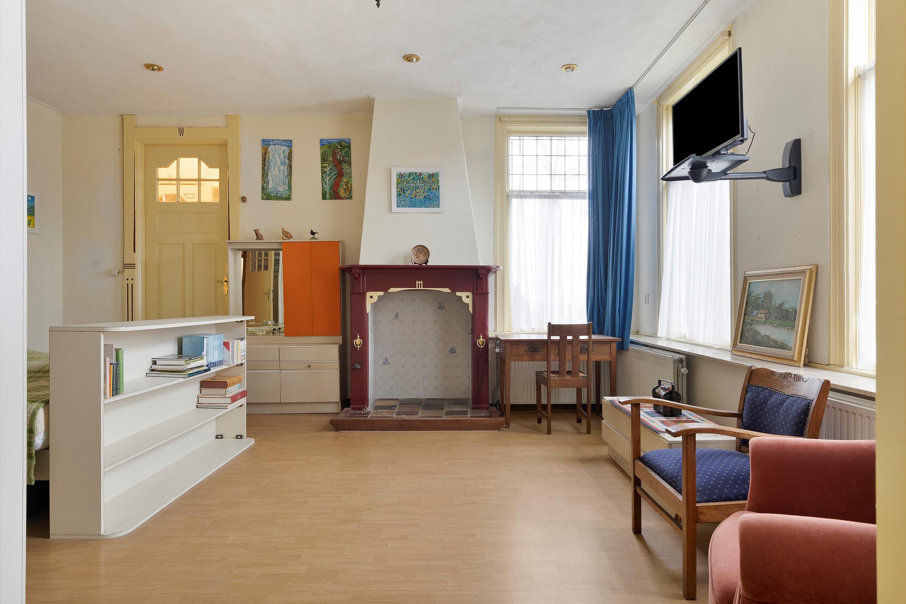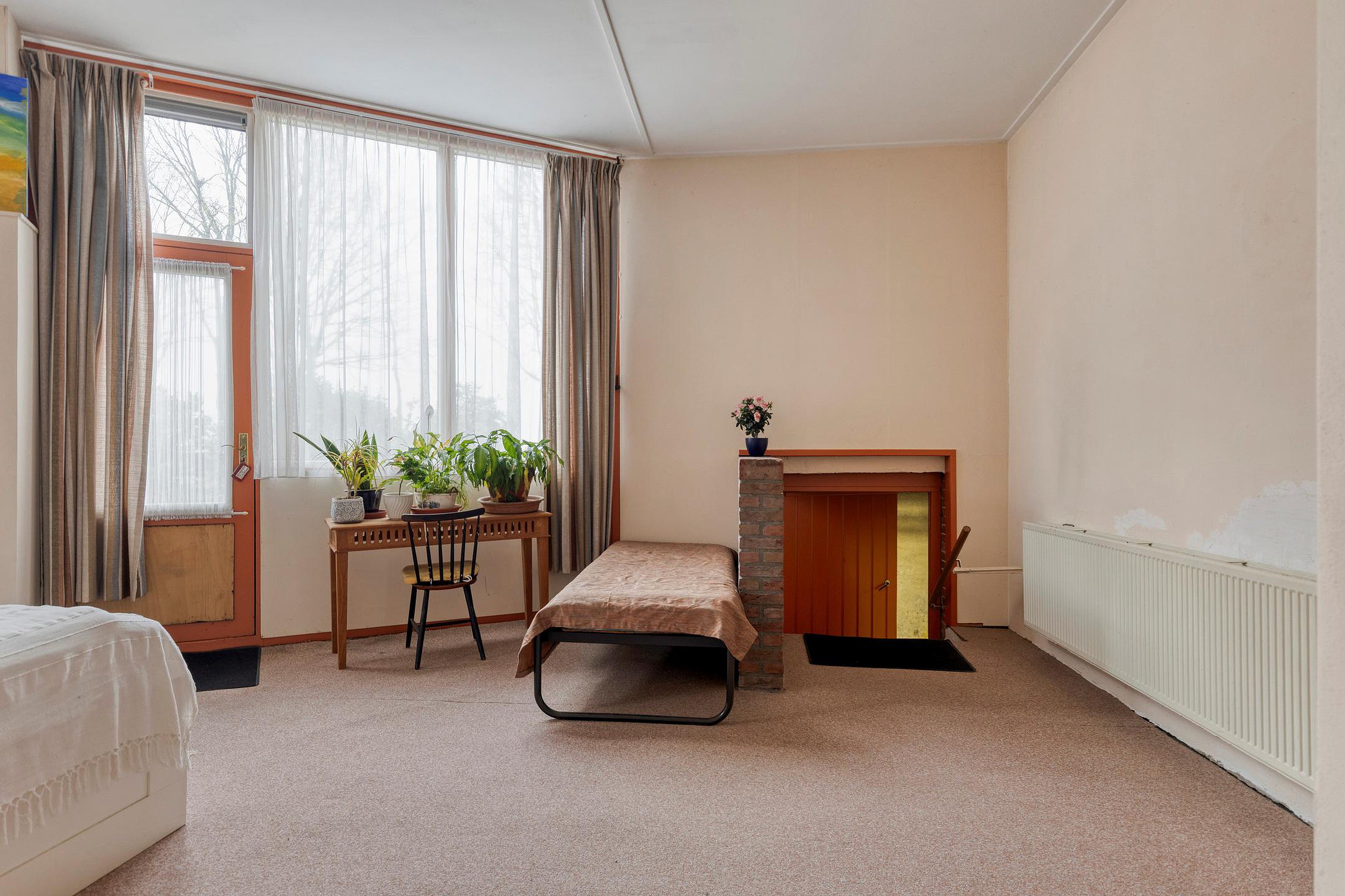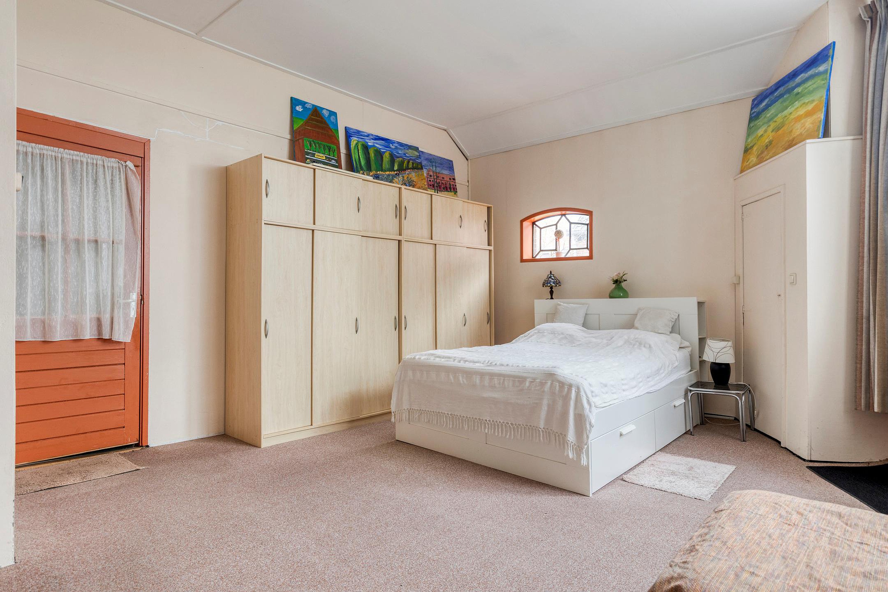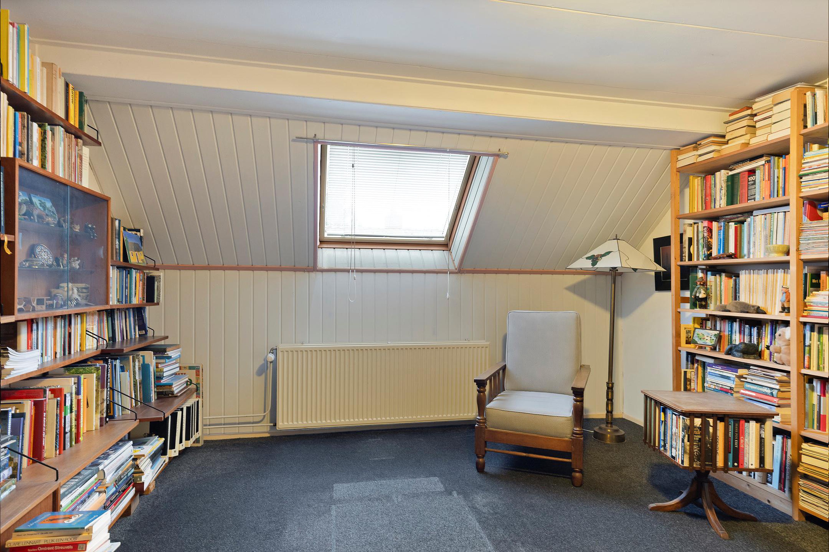 Hier bevindt zich een tweede woon-/werkkamer met toegang naar een gang. Deze gang biedt toegang tot twee slaapkamers en een tweede badkamer, voorzien van ligbad, inloopdouche, toilet en wastafel. Ook biedt deze gang toegang tot een ruime lichte kamer, die zeer geschikt is voor werken of atelier. Deze kamer heeft een eigen deur naar buiten.