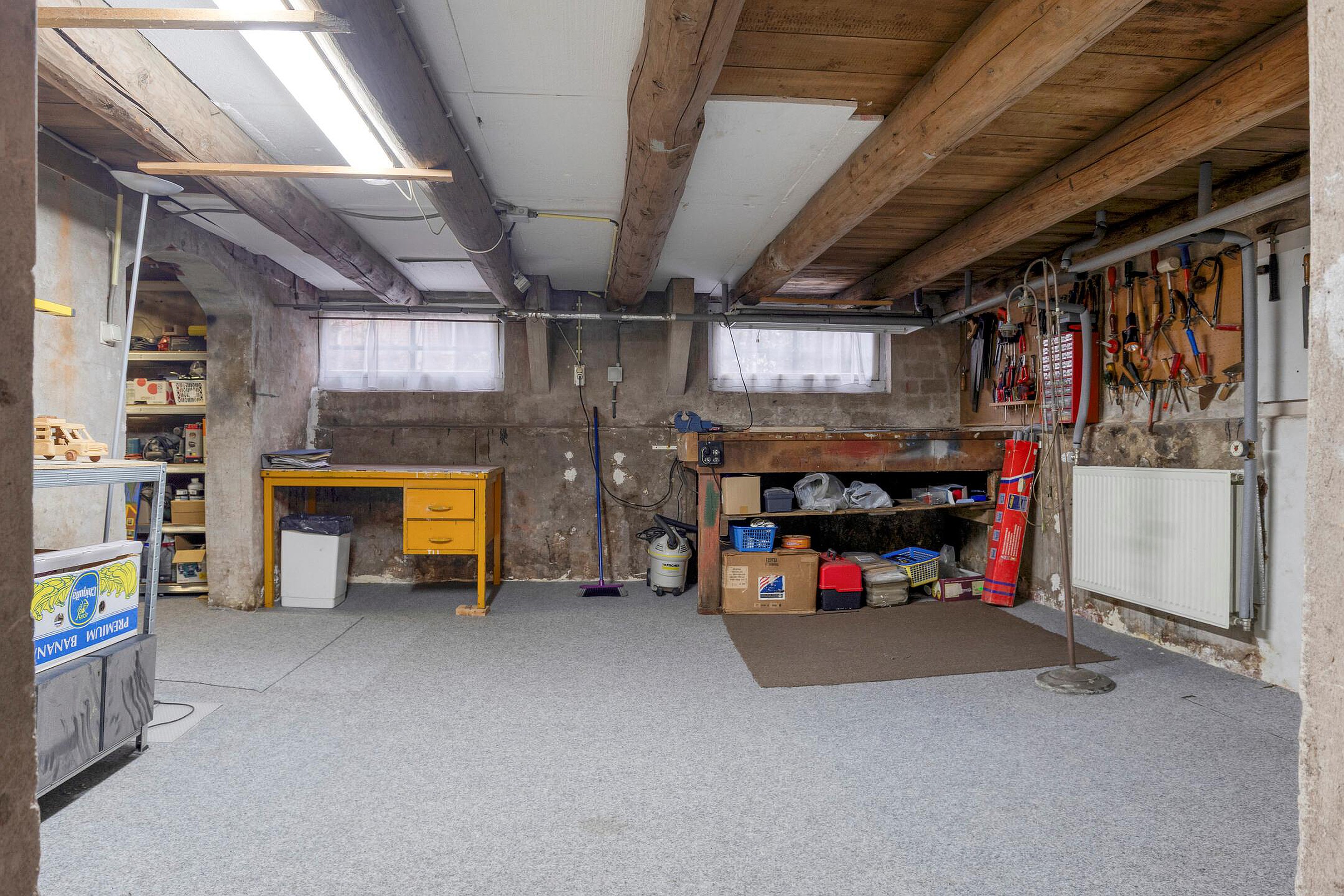 Vanuit de hal is ook het grote souterrain bereikbaar dat veel bergrumte en gebruiksmogelijkheden biedt.