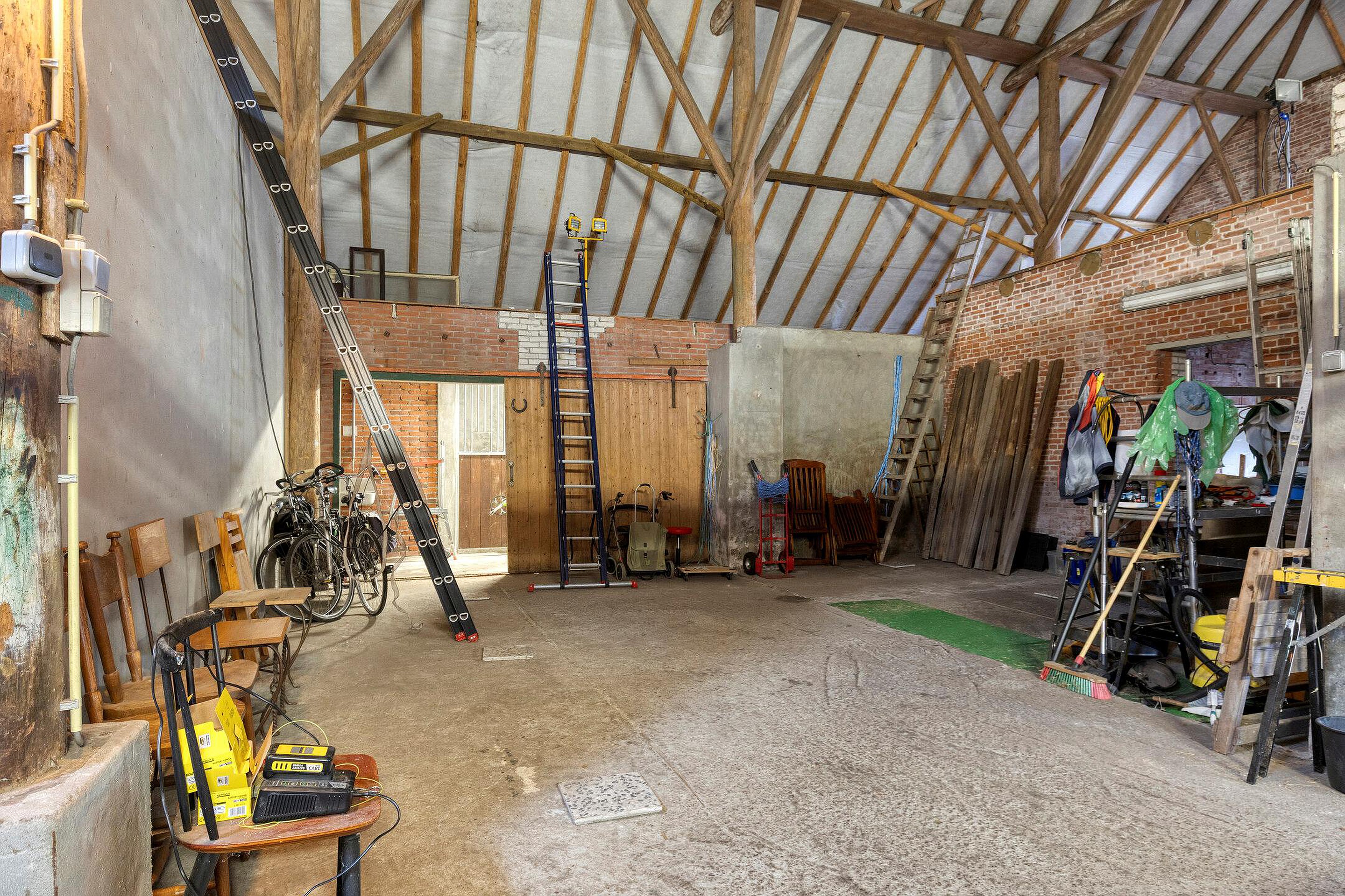 Hier bevinden zich aan de oost- en westzijde elk vier paardenboxen. Verder biedt de deel met zolders volop mogelijkheden voor opslag, hobby’s, dierenverblijf en werkruimte.