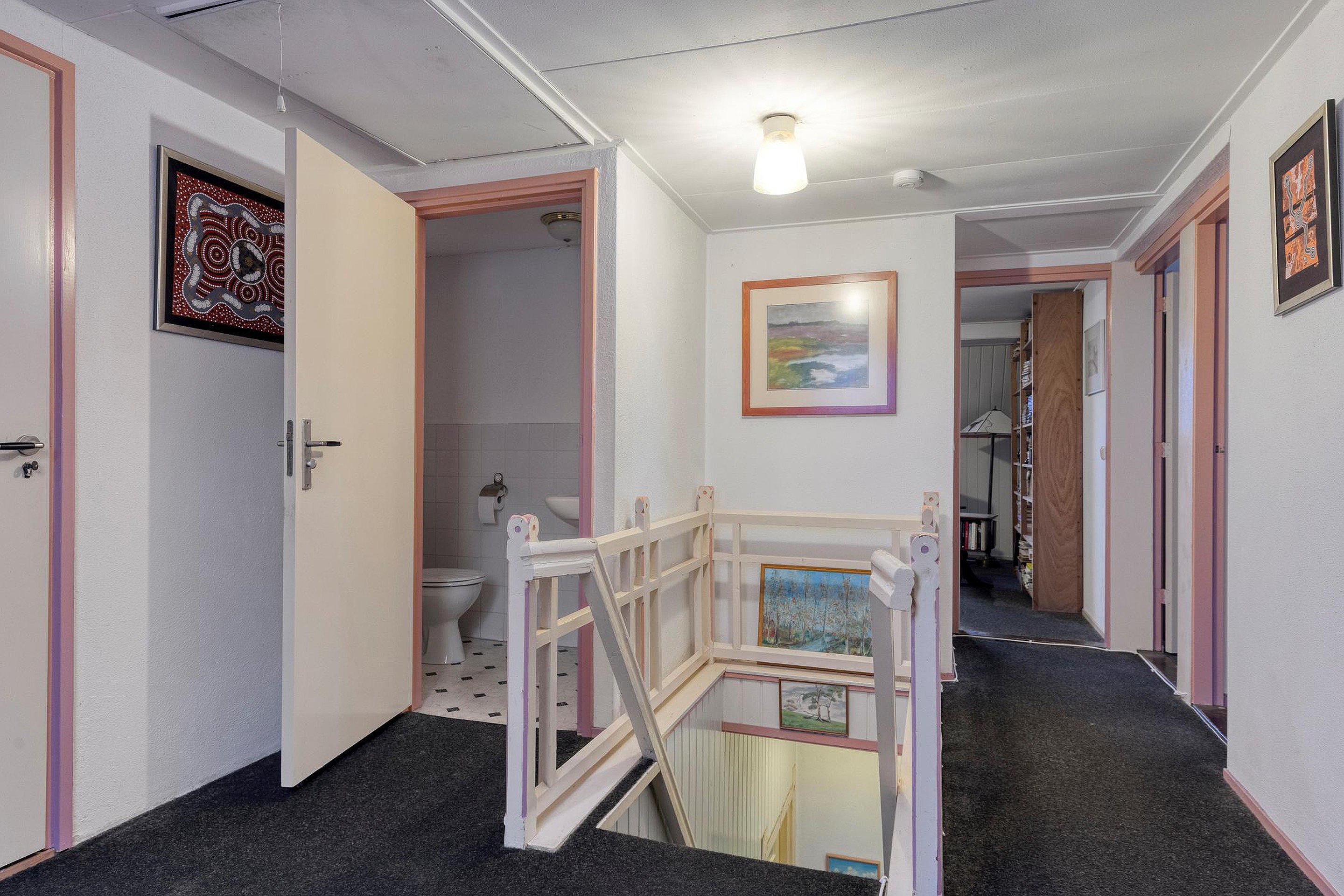 Eerste verdieping Er is een vaste trap naar de eerste verdieping met overloop met toilet, drie ruime slaapkamers en een vlizotrap naar de zolder.
