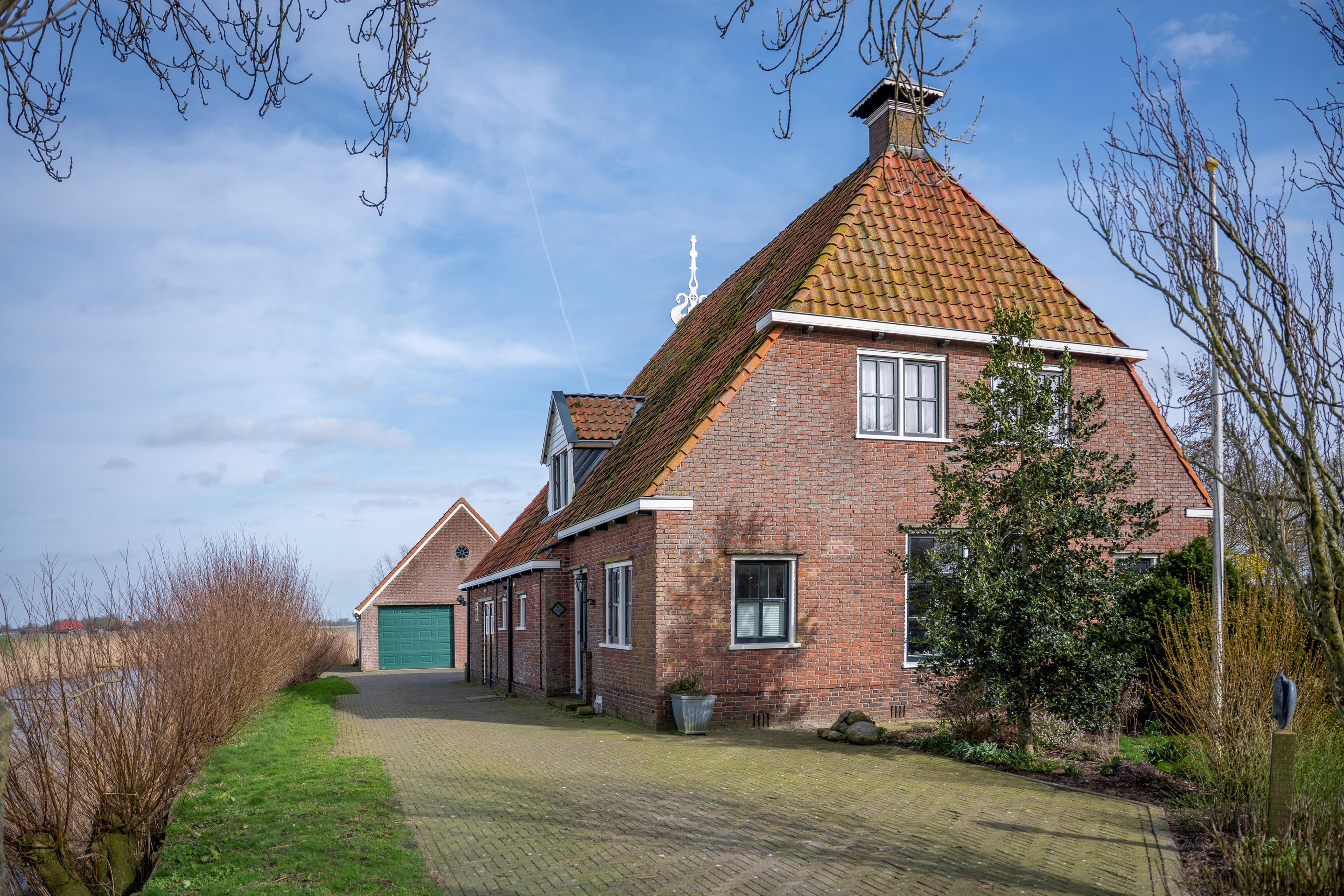 Mooi gelegen en solide gebouwd jaren-'30 woonboerderijtje met royale dubbele garage ( 8 x 8 m ) aan open vaarwater ( Makkumervaart met aansluiting op het Van Panhuyskanaal ) centraal gelegen tussen Bolsward en Makkum met ook goede ontsluiting via A7/Afsluitdijk ( Amsterdam 1 uur ). Eigen grond 1545 m2