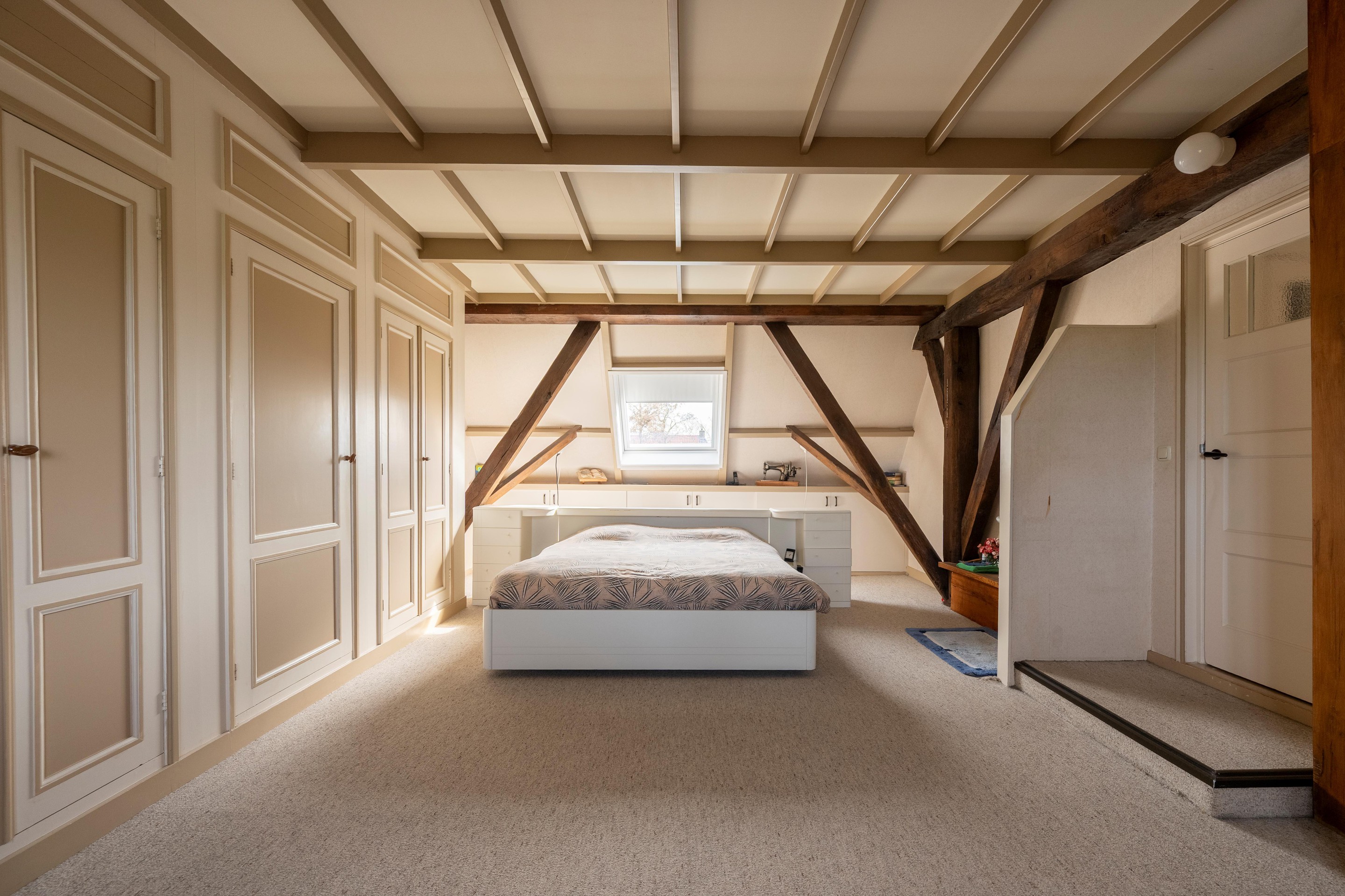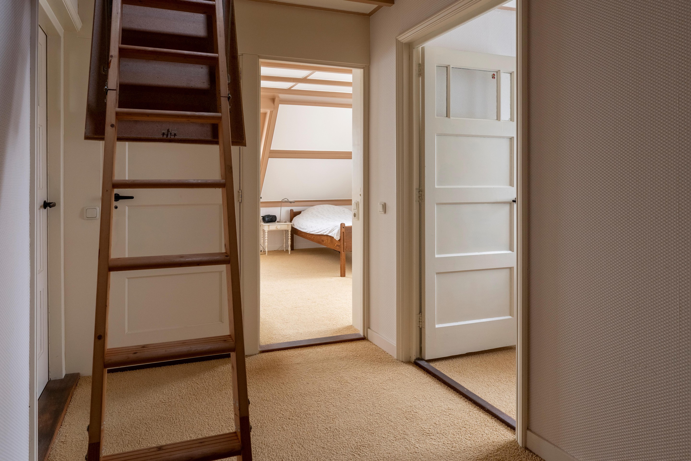 overloop, apart 2e toilet, 3 slaapkamers, waaronder een royale ouderslaapkamer van 30 m2 met dakkapel en dakvenster, alle slaapkamers voorzien van vaste inbouwkasten en 2 voorzien van dakkapellen