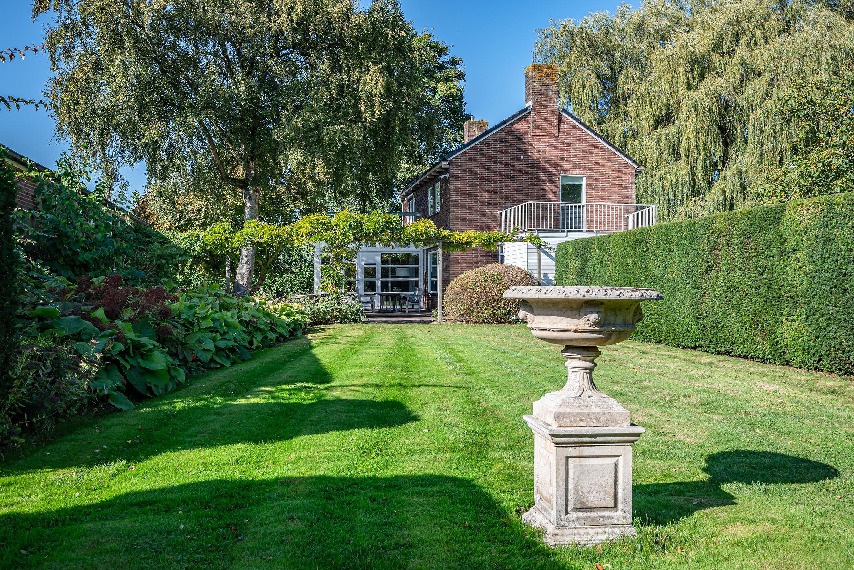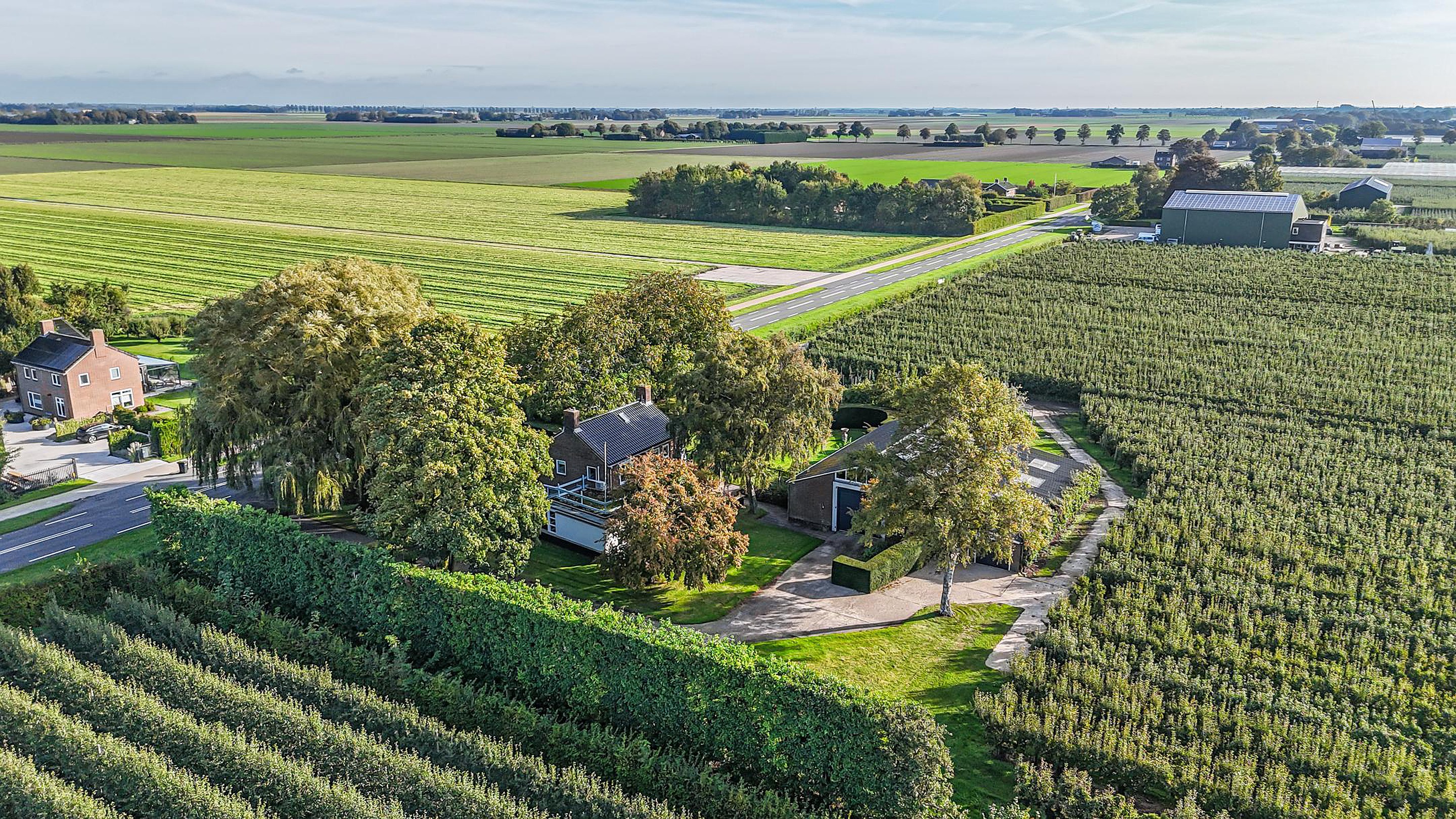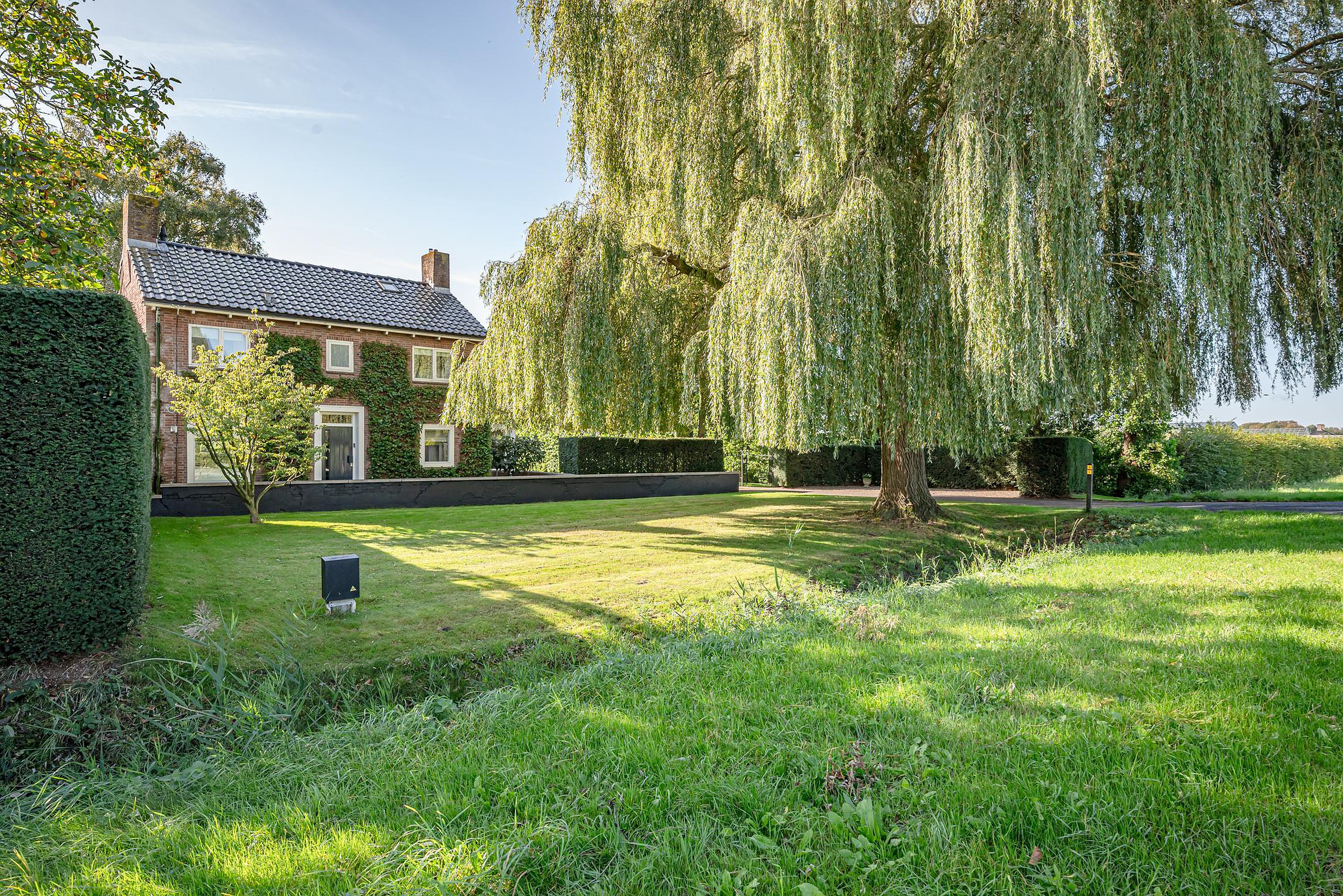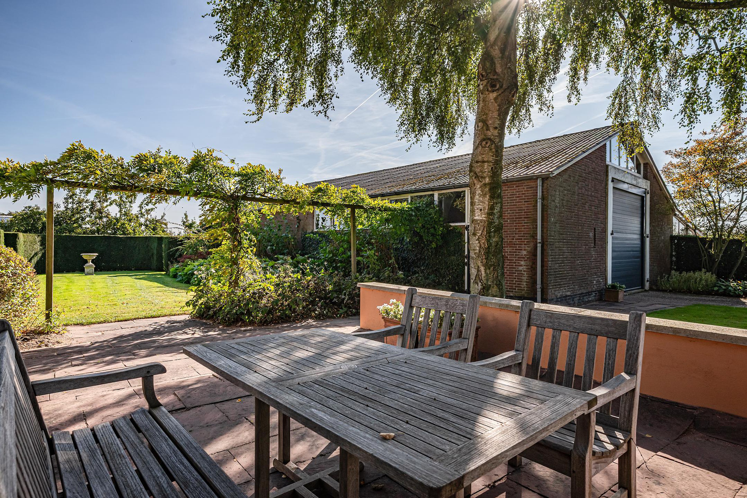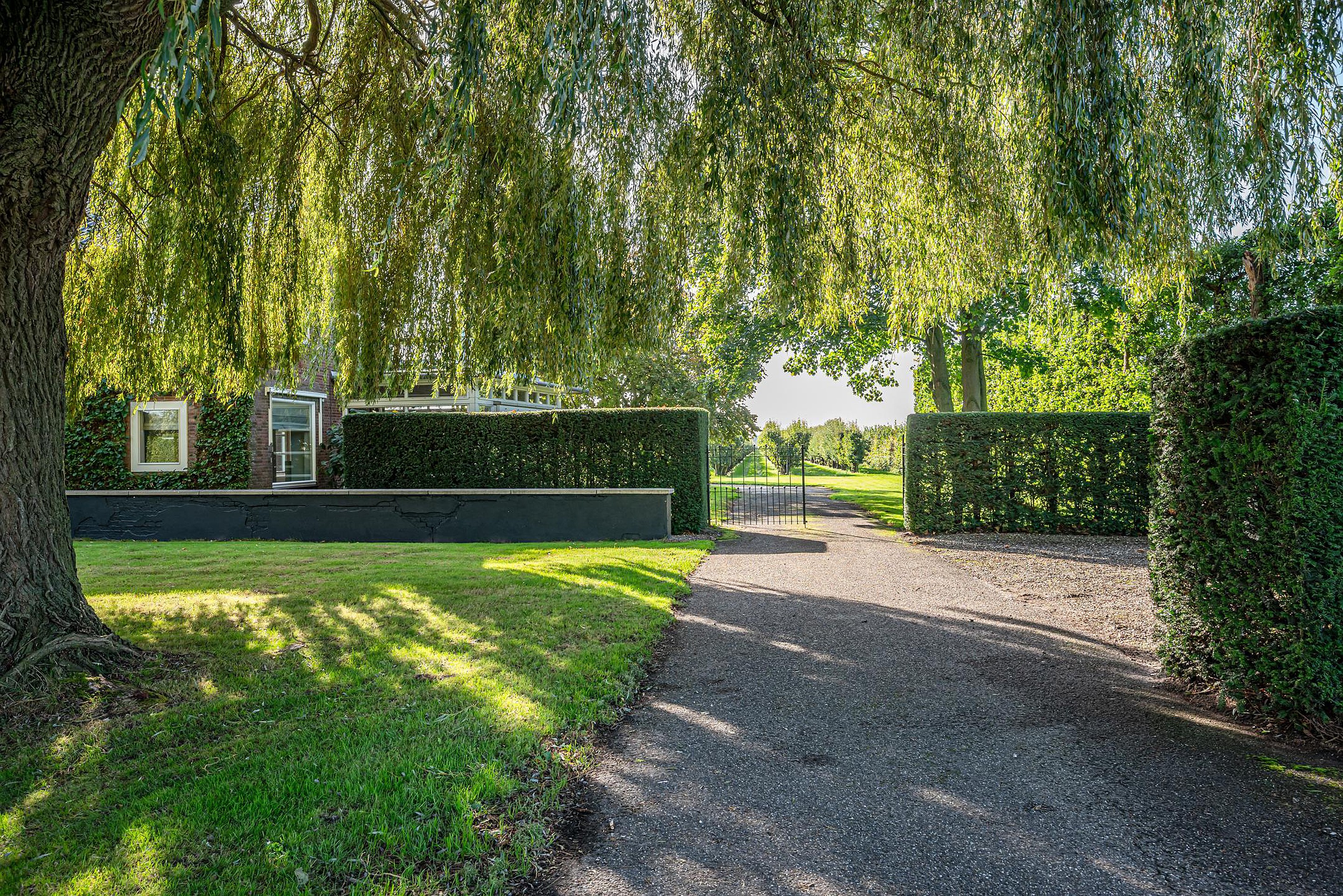Deze boerderij is meer dan een woning; het is een manier van leven. Hier gaat landelijk wonen hand in hand met moderne voorzieningen. Het erf is fraai (onder architectuur) aangelegd met gazon, strakke hagen, betonpaden, muurtjes, bordessen en prachtige bomen zoals een treurwilg, walnotenbomen, hazelnootboom en diverse fruitbomen zoals appels, peren, stoofperen, stoofappels en pruimen.