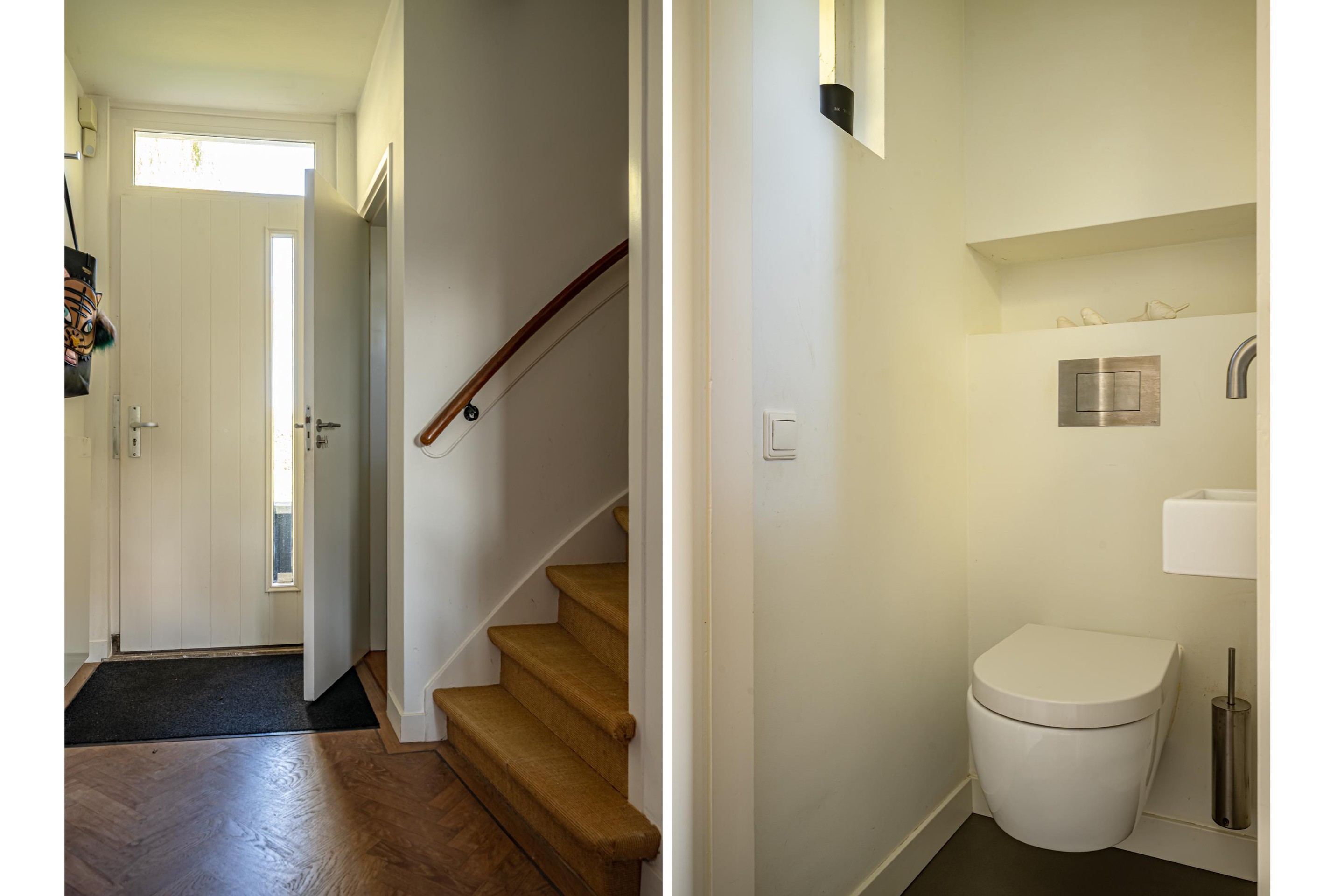 - Entree/hal met modern toilet, fontein en trapopgang