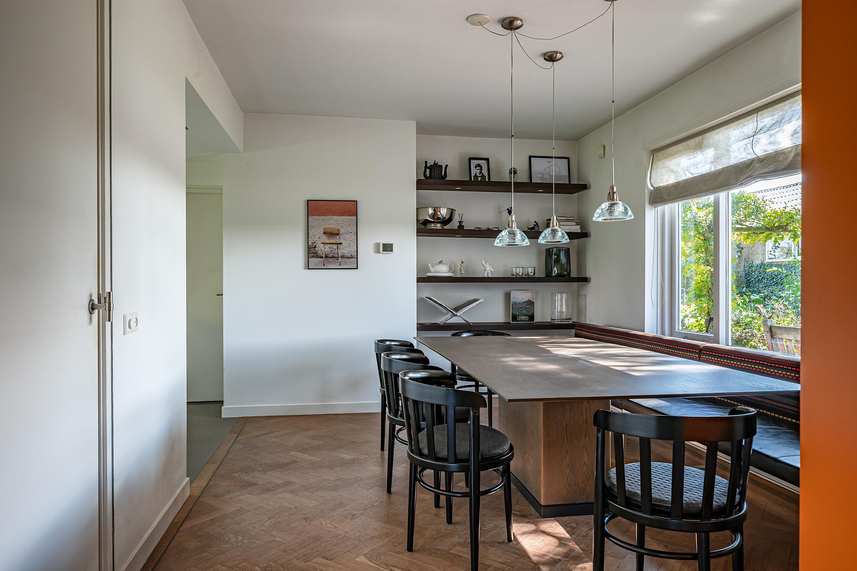 - Visgraat parketvloer van Bruynzeel op de begane grond (m.u.v. keuken en bijkeuken)