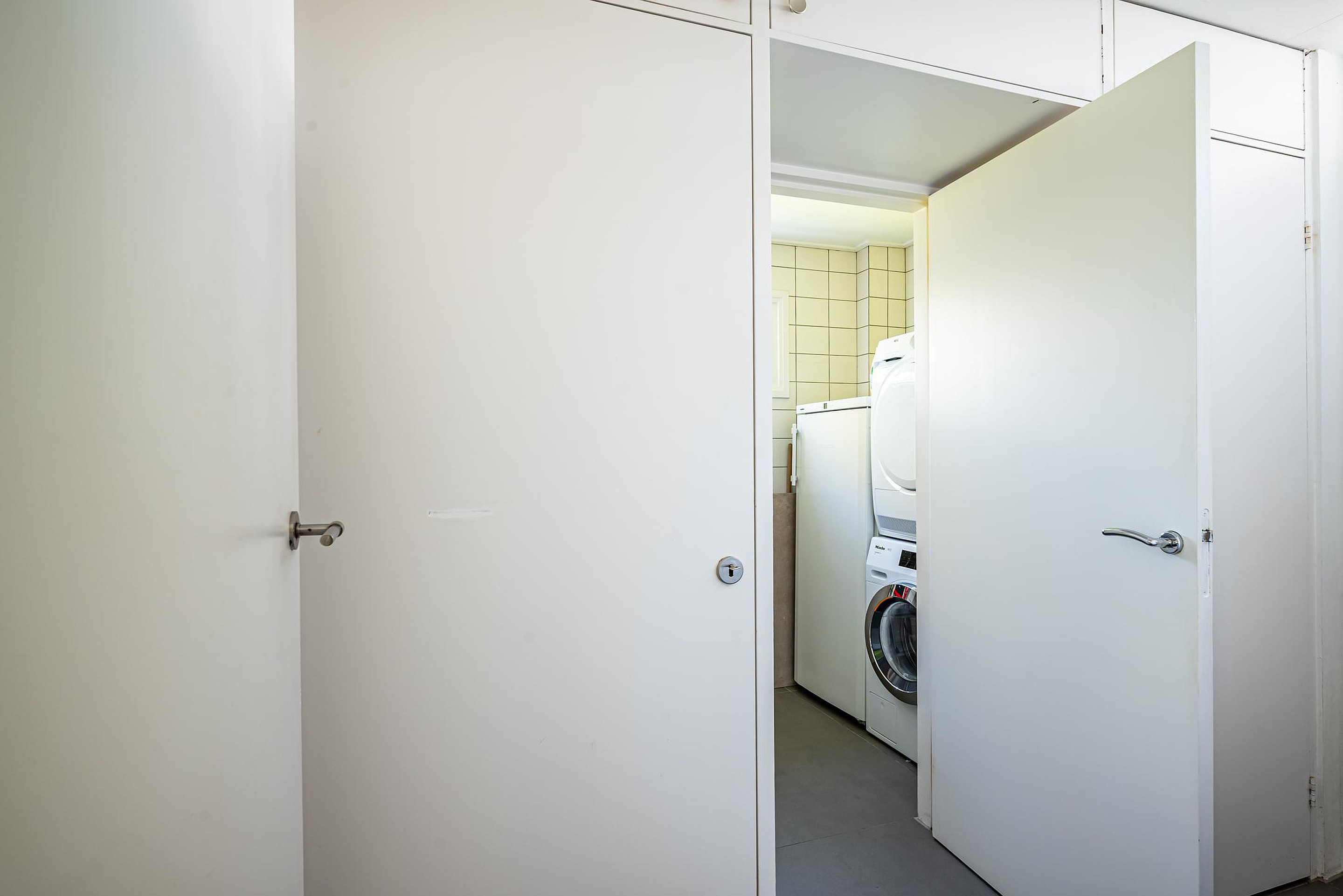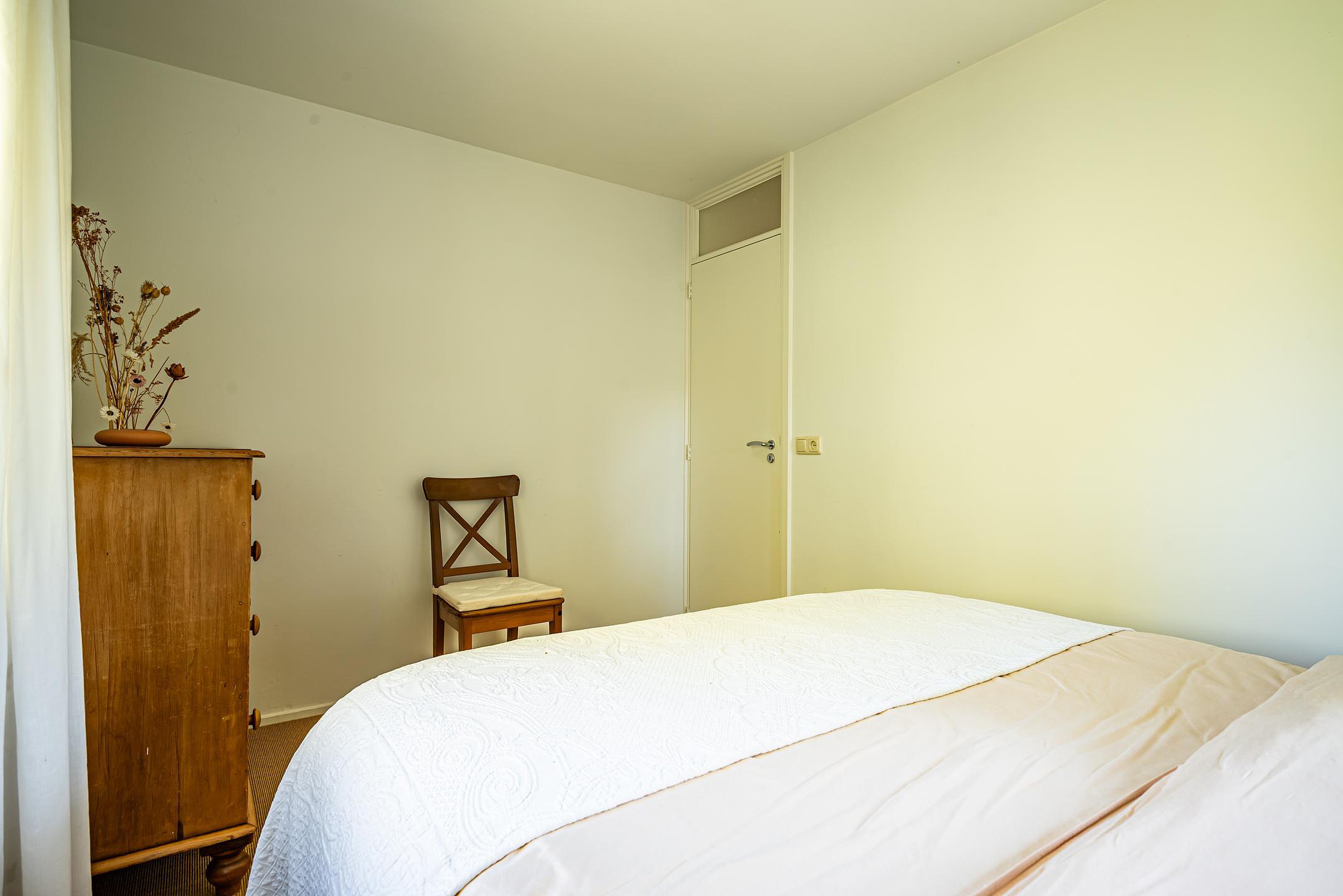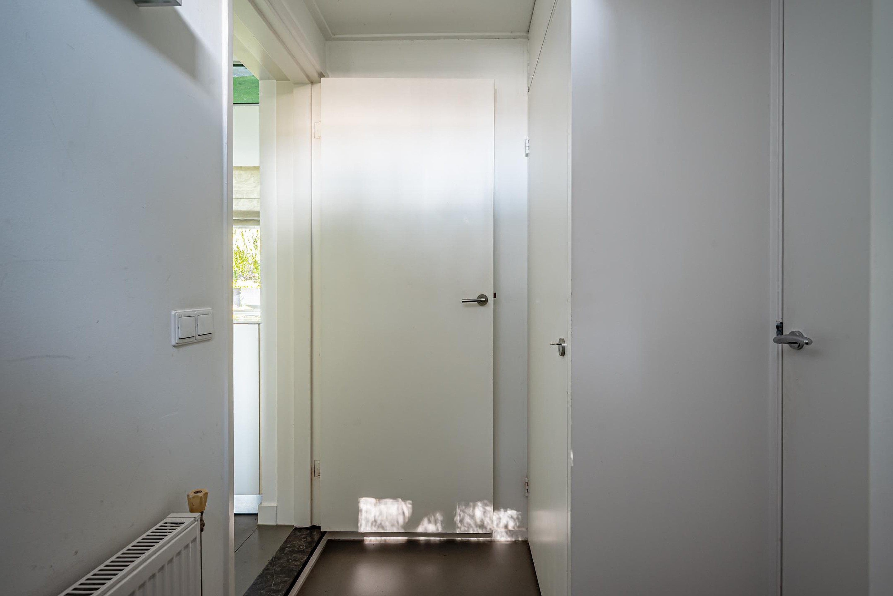 - Bijkeuken met vaste kasten, afgesloten wasruimte/opslag en achteringang met meterkast