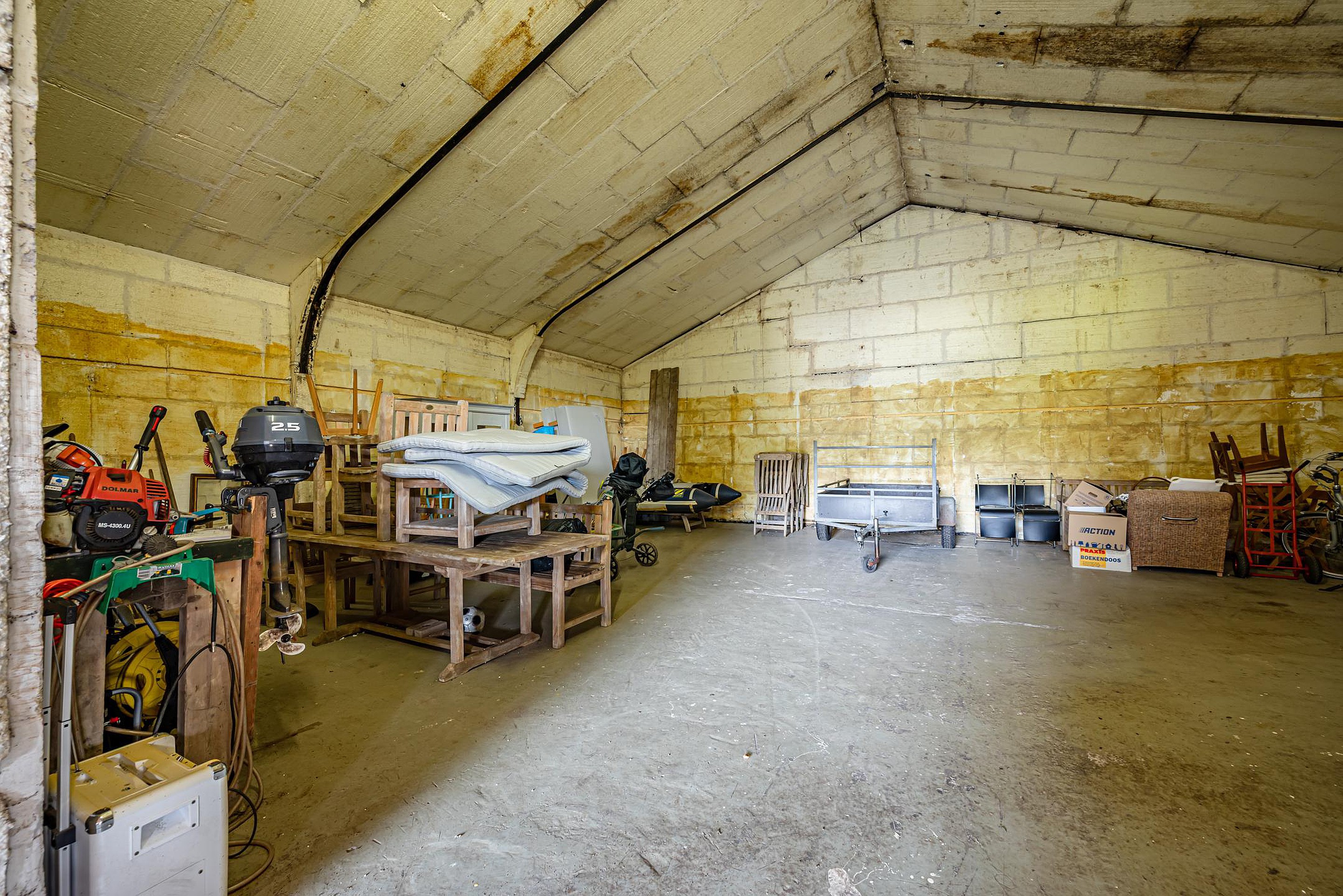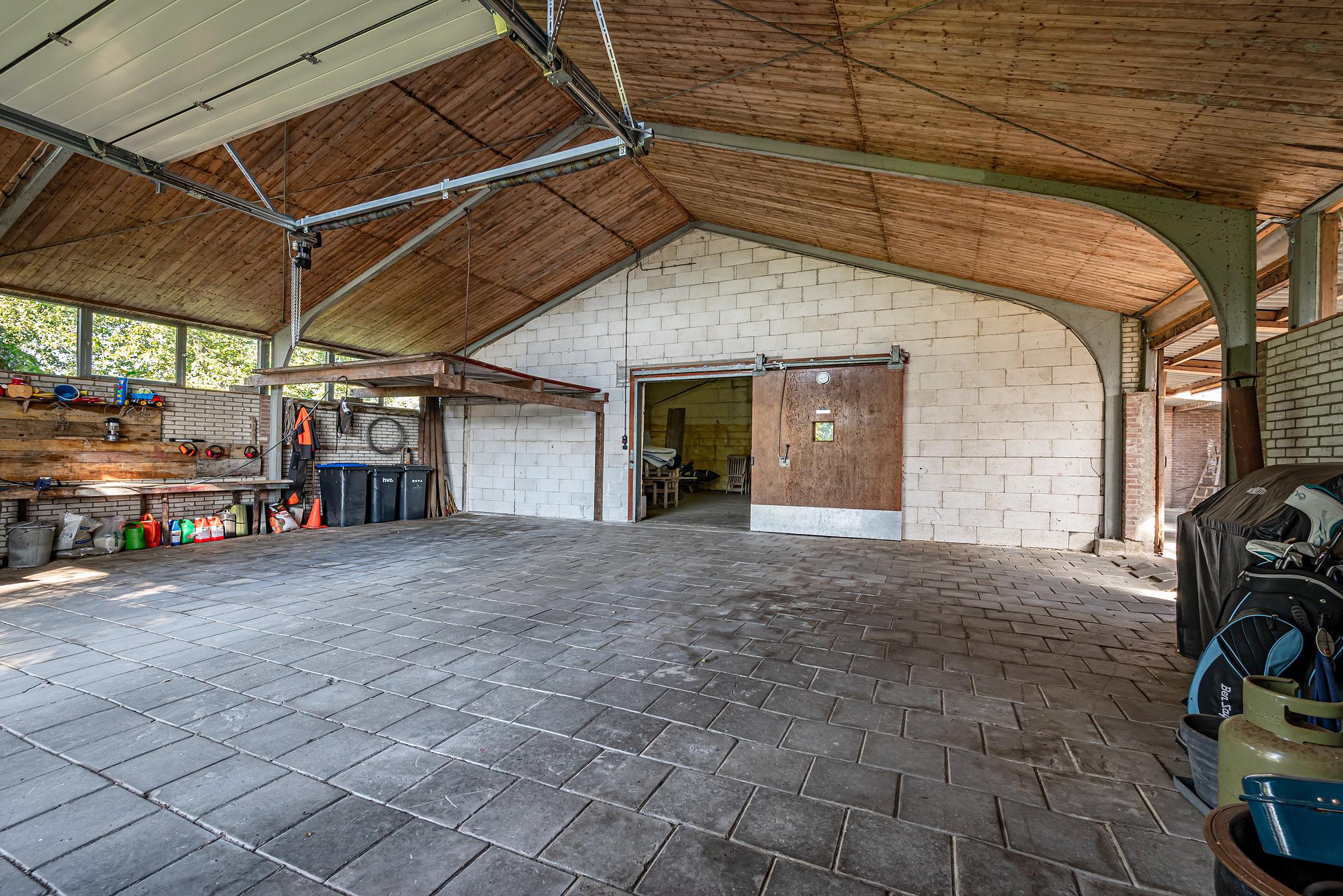 o Betonnen en tegelvloer, elektrische overheaddeur (3,25 m x 3,10 m)met afstandsbediening