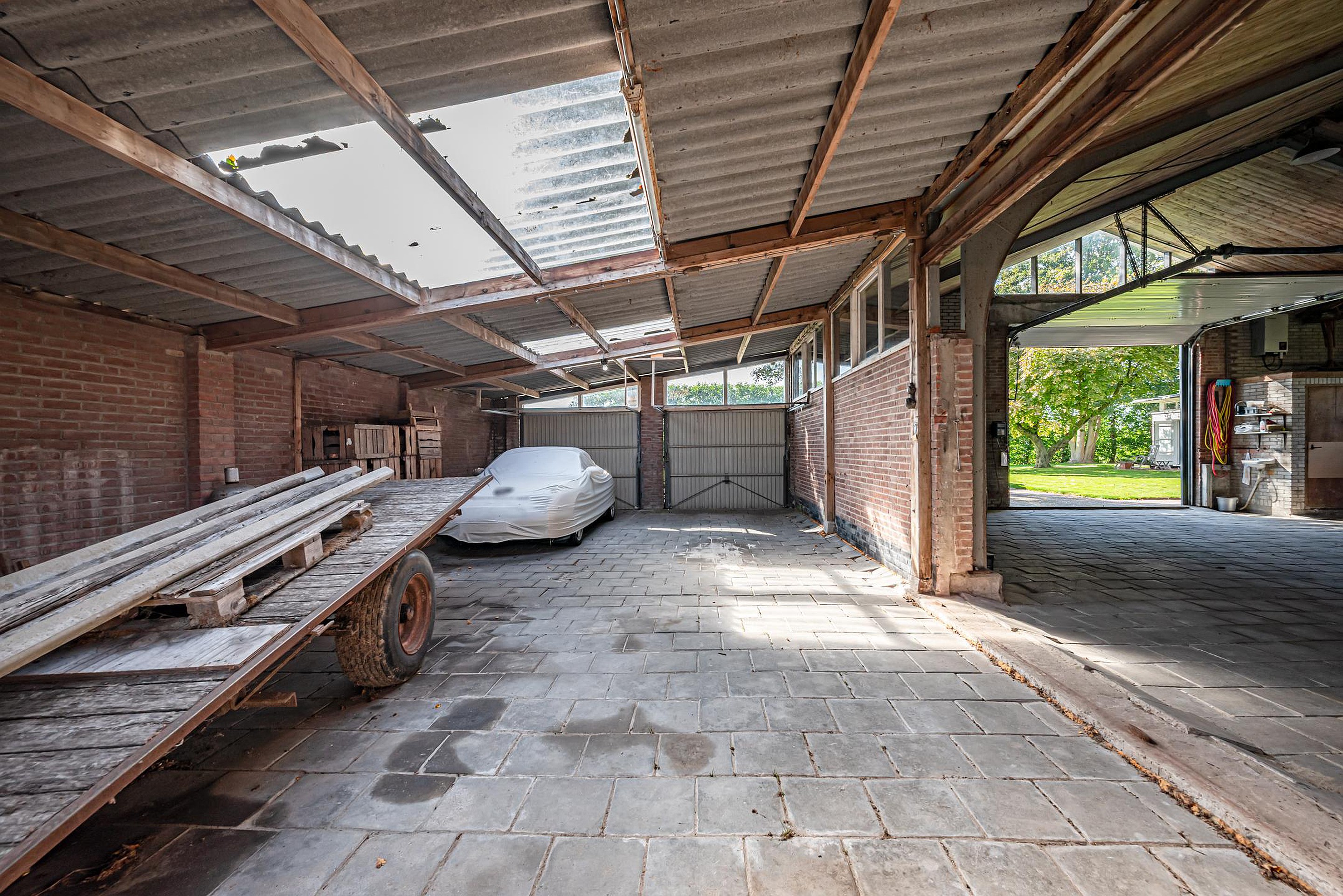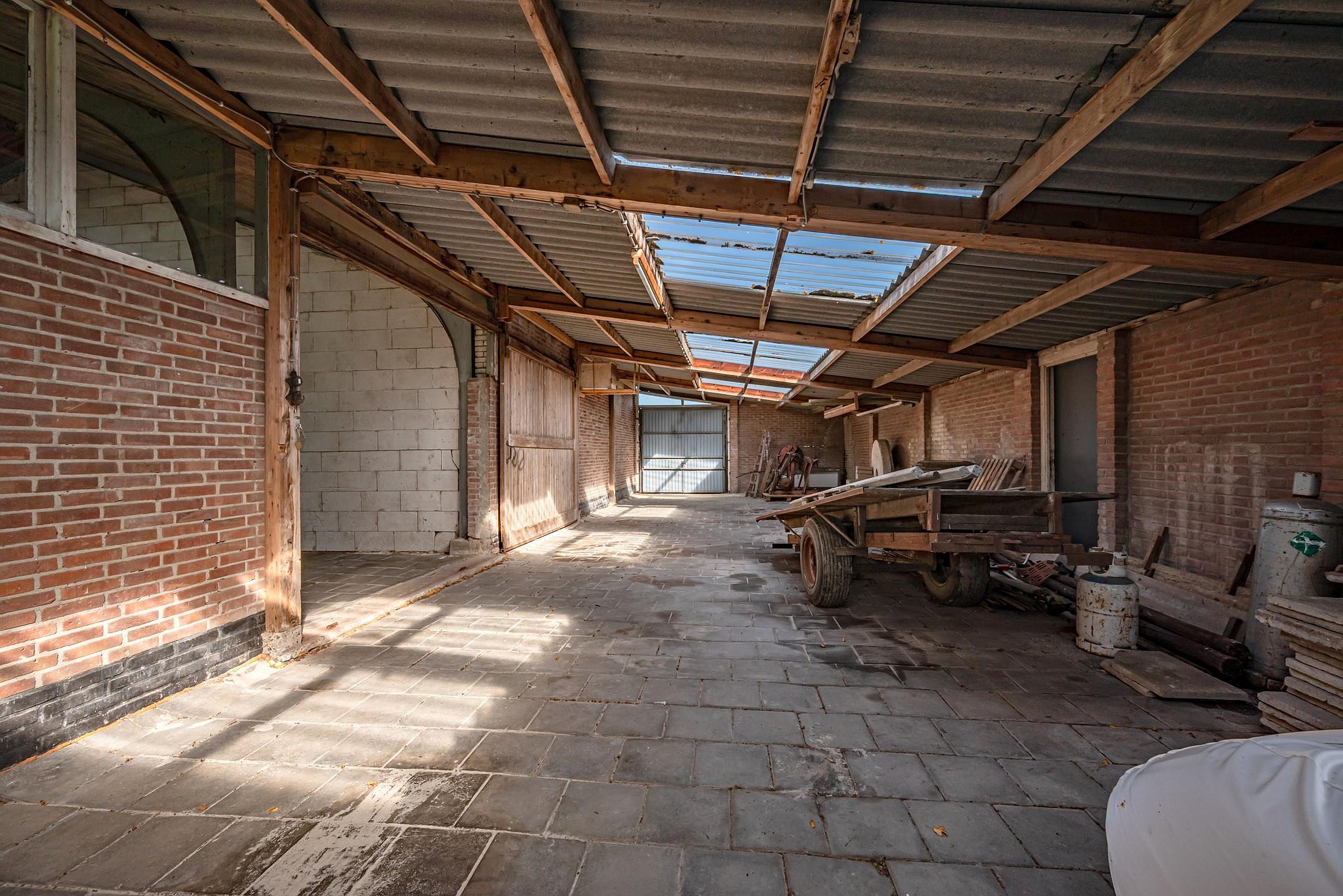 o Uitgevoerd in staalconstructie met golfplaten dak, deels geïsoleerd