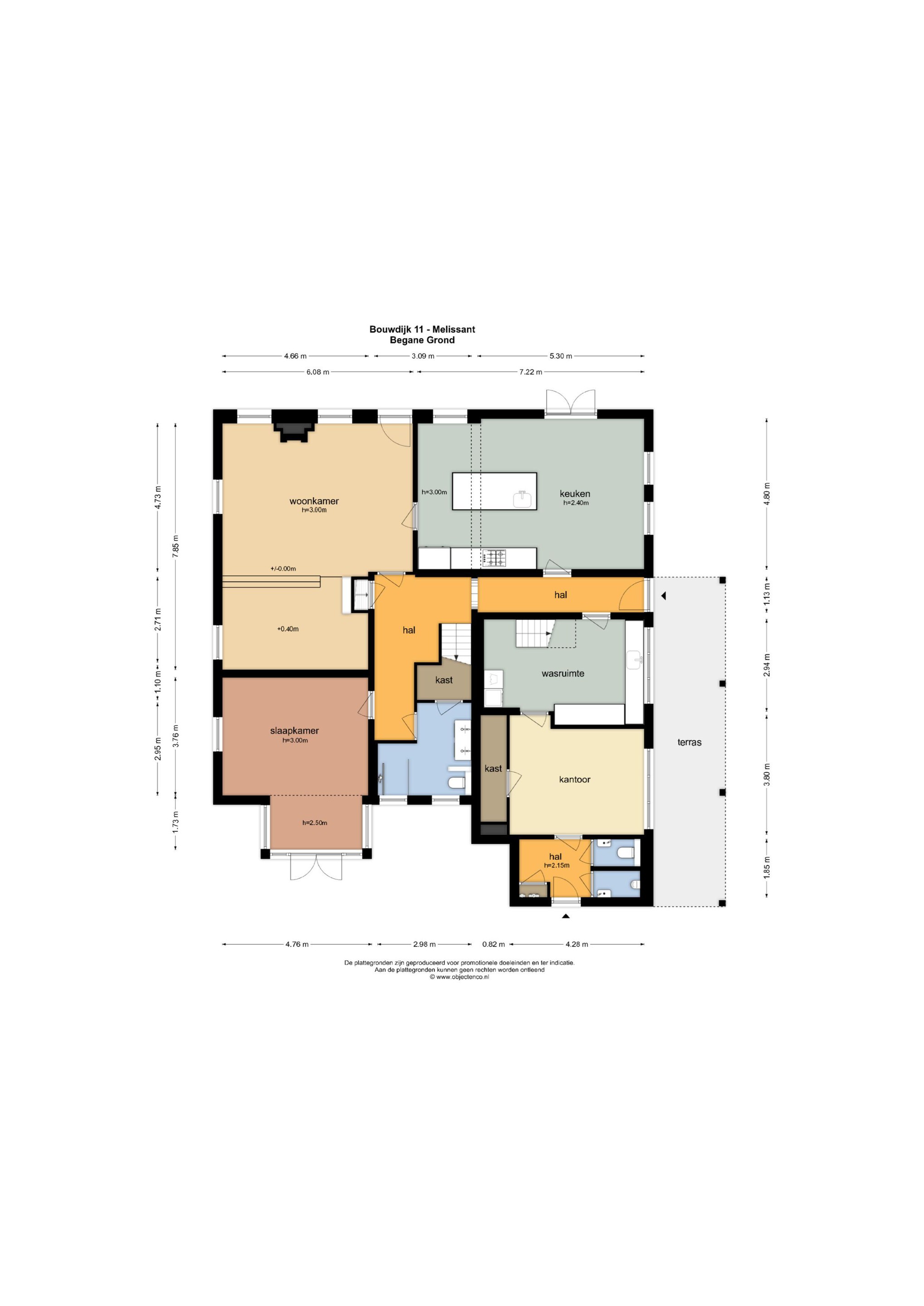 - Kantoorruimte met achterportaal met tweede en derde toilet (heren en dames) en zijingang (eigen ingang voor kantoor)