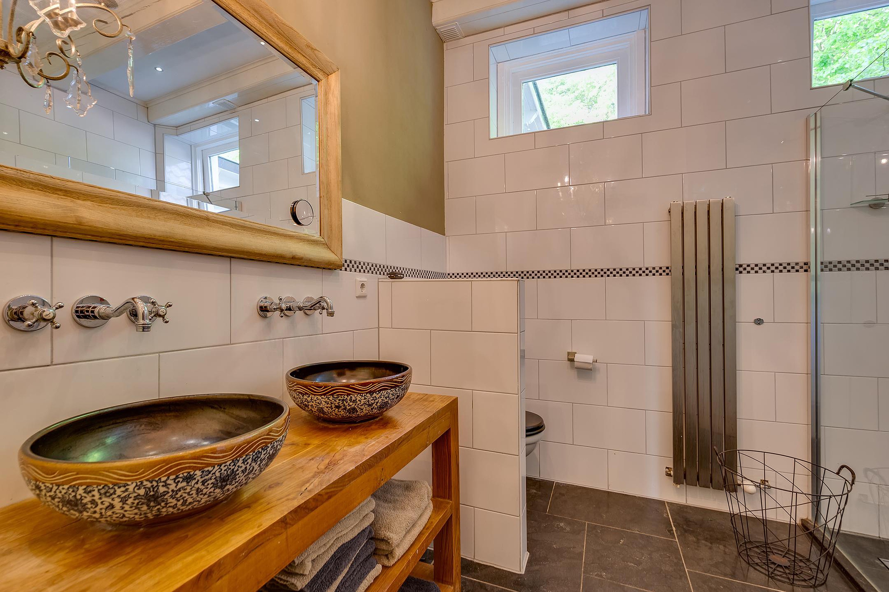 - Badkamer met ligbad, aparte douche, badmeubel en vierde toilet