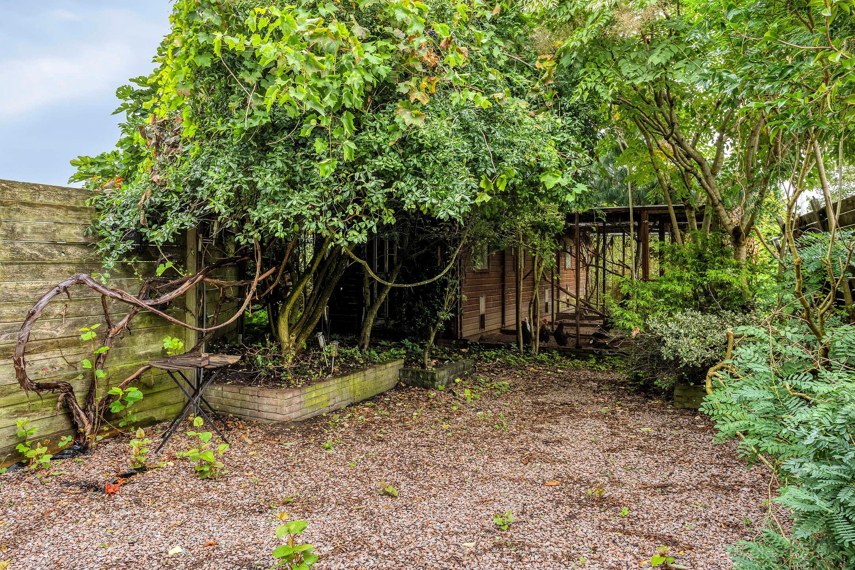 Tuin Voor en zijtuin, groot bestraat erf aan de achterzijde.