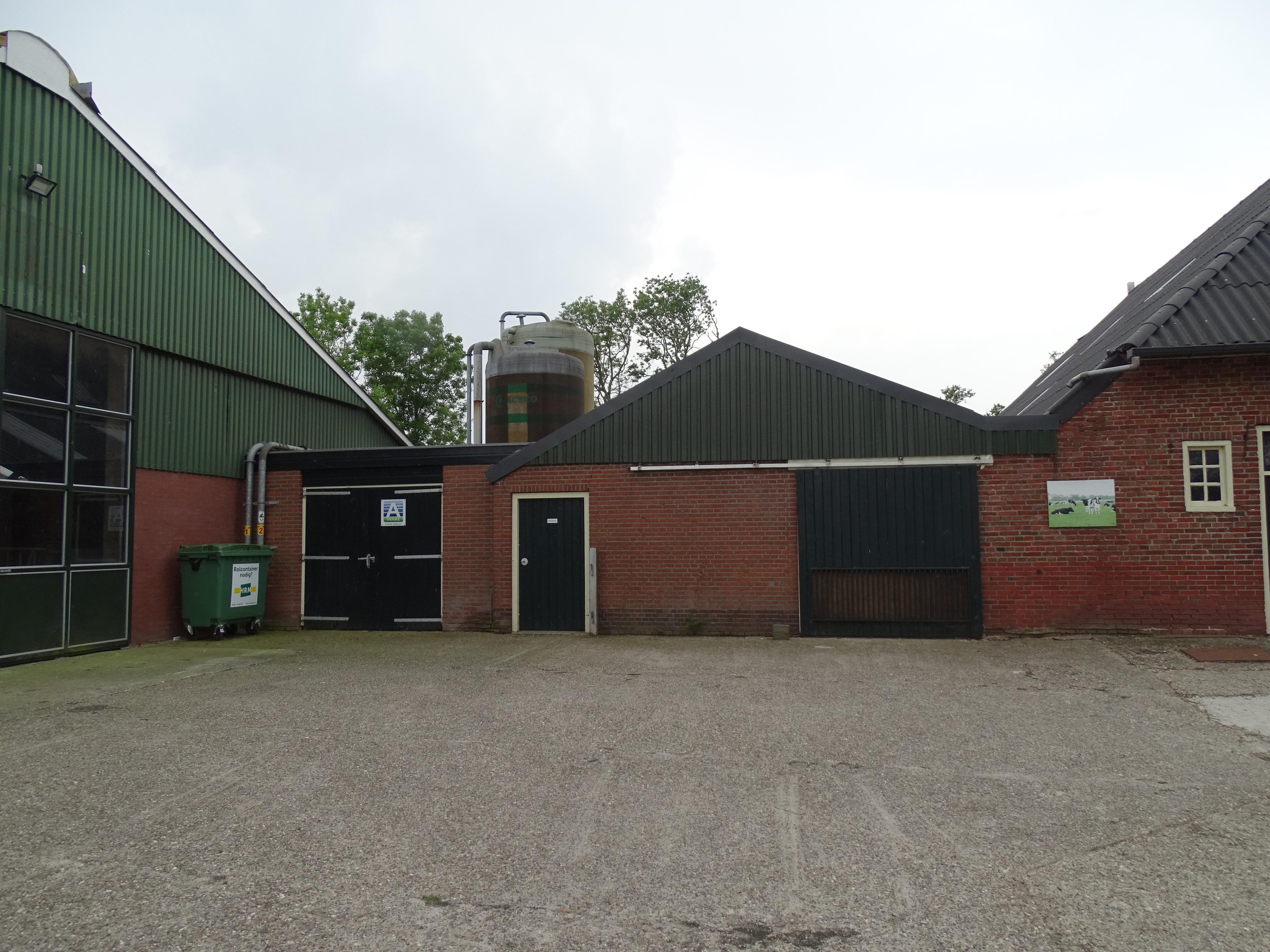 Op het erf bevindt zich een voormalige ligboxenstal, gebouwd in U-vorm en voorzien van een brede voergang van circa 5 meter. De stal maakte voorheen deel uit van een melkveebedrijf, maar is inmiddels niet meer in gebruik voor de melkveehouderij.