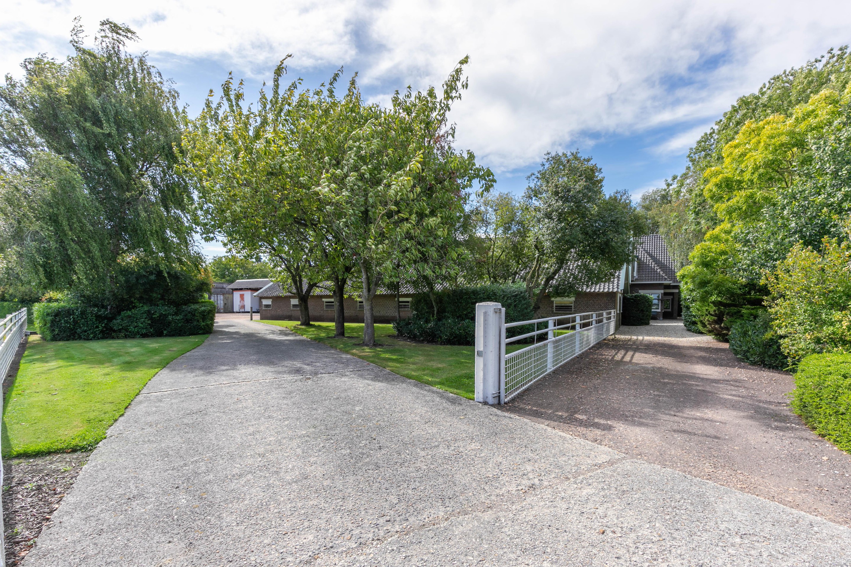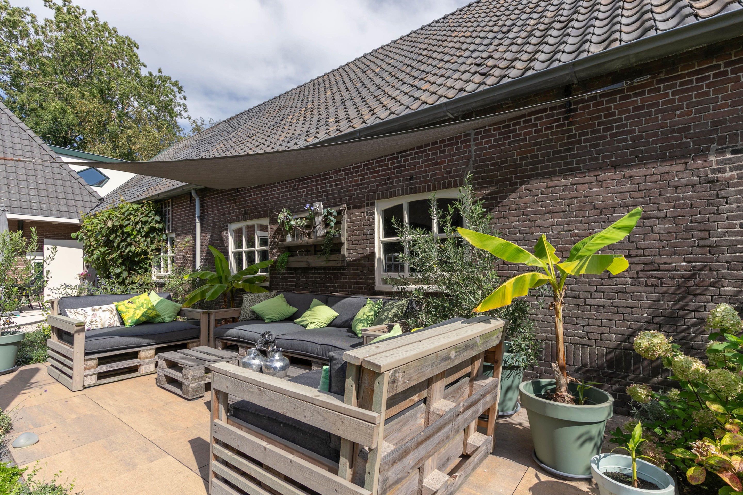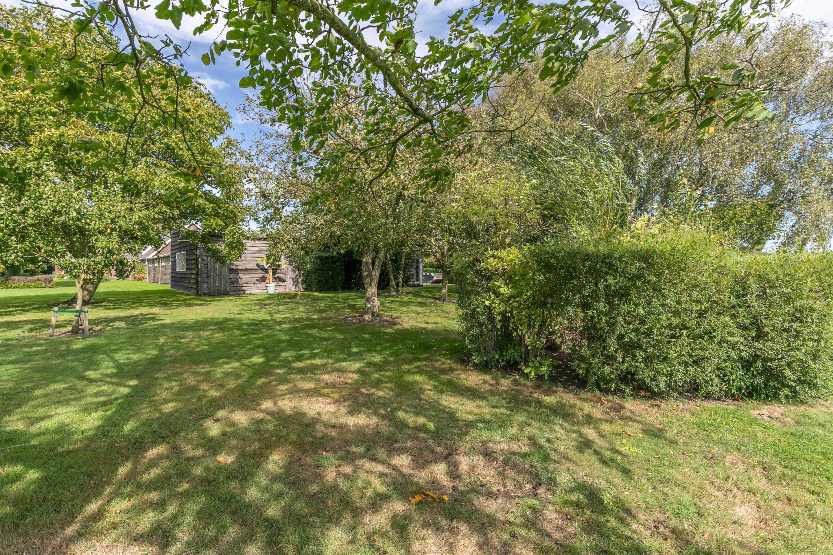 Tuin De tuin ligt rondom de opstallen en is grotendeels door een sloot (met beschoeiing) afgescheiden van de omliggende percelen. Vanaf de weg is er een oprit die enerzijds naar de woning loopt, anderzijds naar het deel met schuren aan de achterzijde. Achter op het perceel staan diverse fruitbomen. De tuin is netjes aangelegd en heerlijk rustig gelegen.