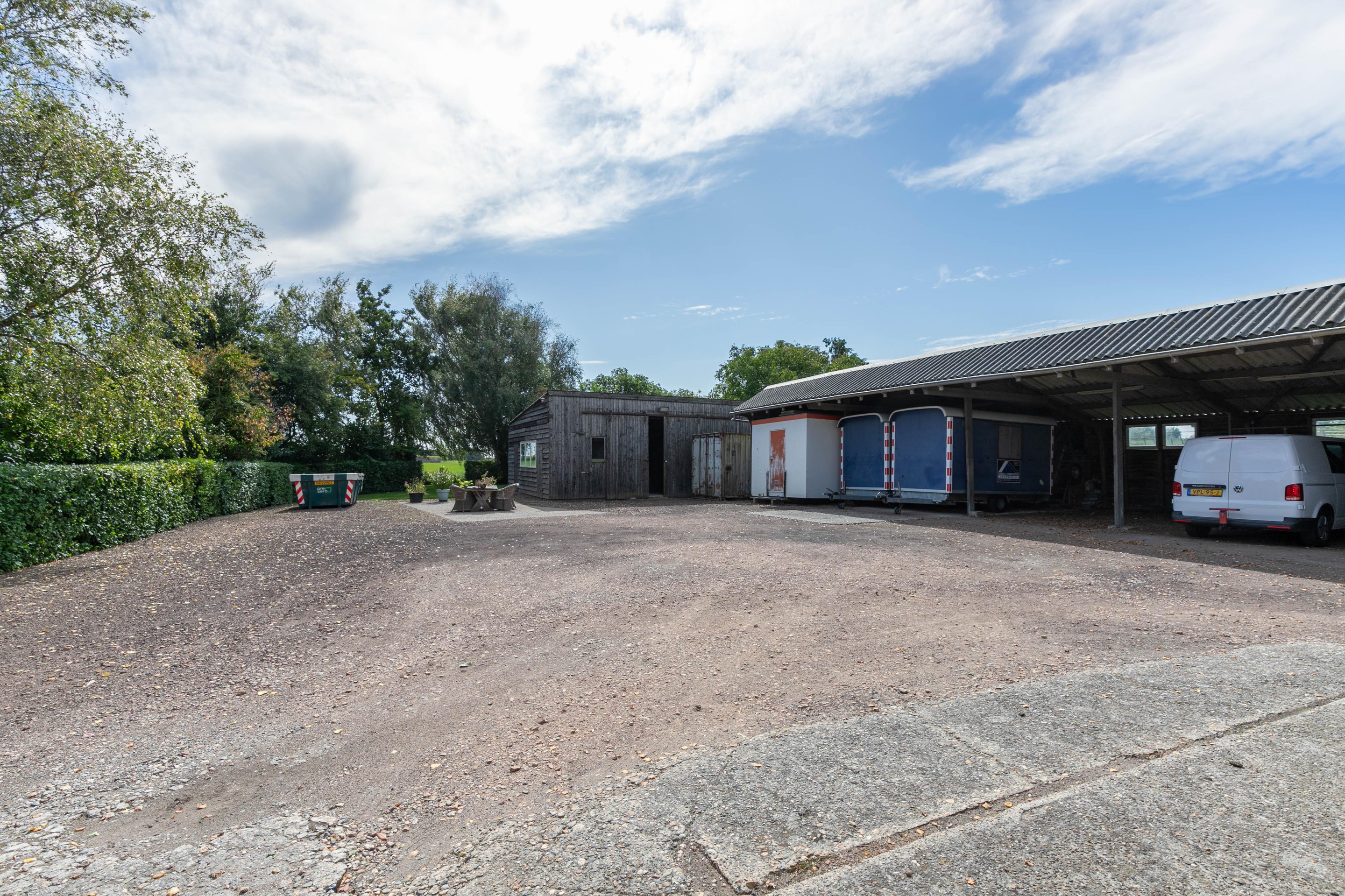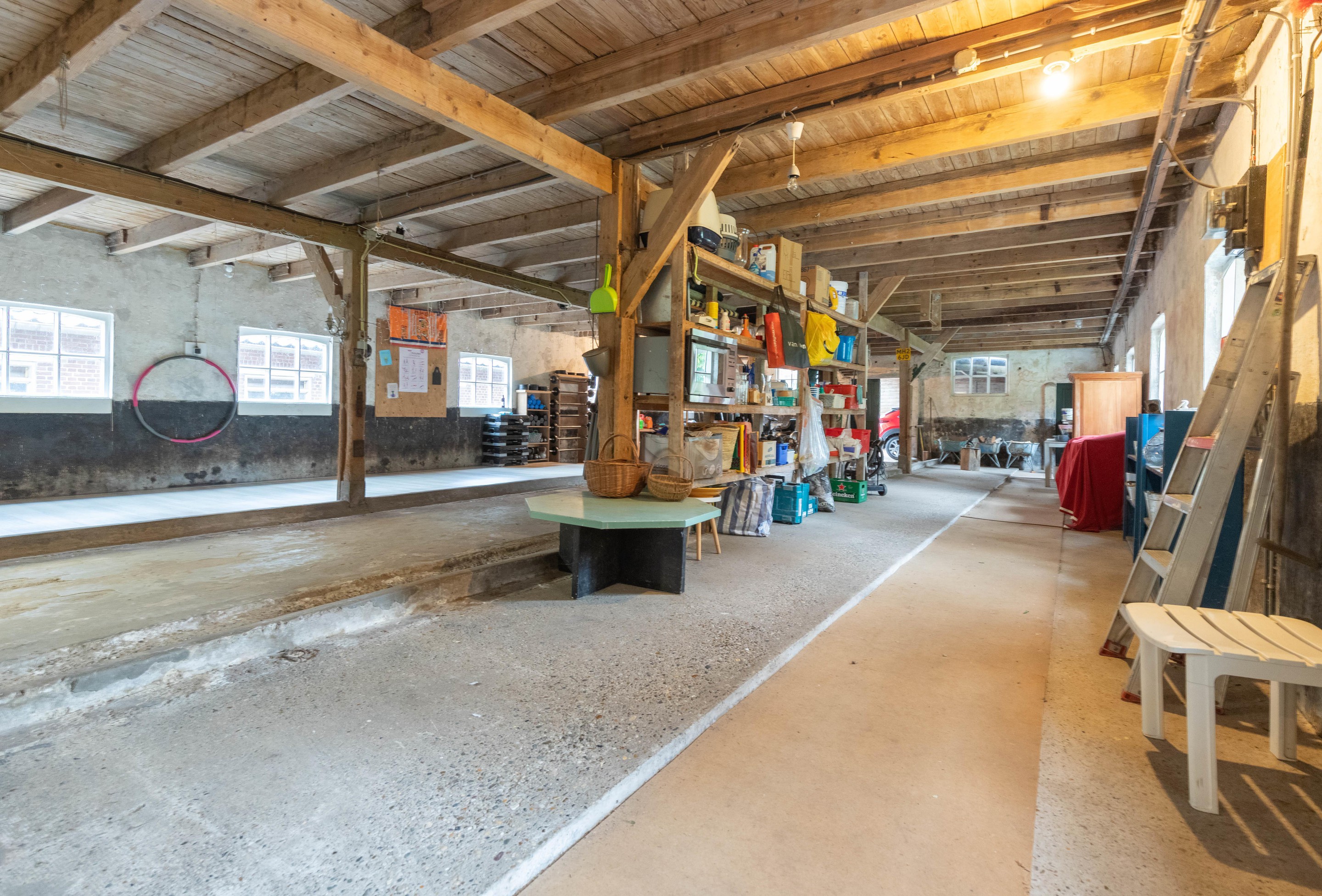 Op het achterliggende perceel zijn nog diverse schuren beschikbaar. Naast de stal is er nog een tweede stal, een overdekte stalling voor auto's, campers, etc. Een grote schuur met werkplaats, opslag en kantine met keukentje en toilet. En in de tuin met fruitbomen nog een broeikas.