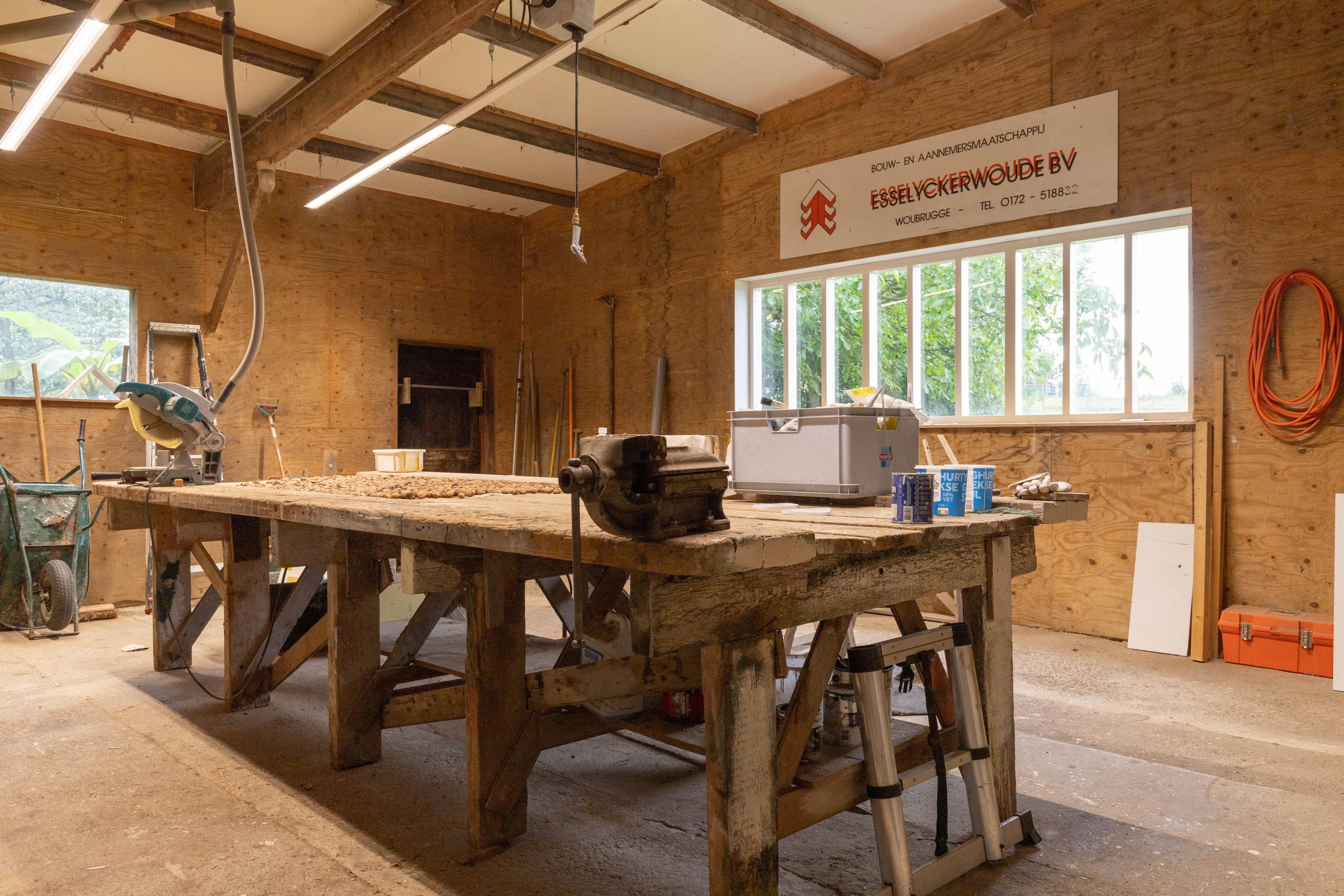 Aan de Kerkweg tussen Woubrugge en Hoogmade in ligt deze mooie woonboerderij met diverse schuren. Het geheel is bedrijfsmatig! Het voorste deel met woning in privébezit, het achterste deel zakelijk. De boerderij is netjes bijgehouden en beschikt over een kantoor, drie slaapkamers, badkamer en kelder. De tuin rondom de woning en schuren is fraai aangelegd.
